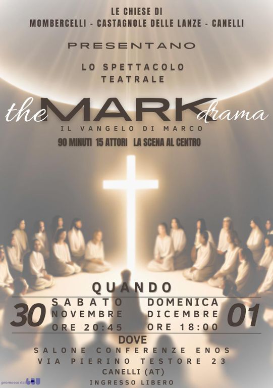 Sabato 30 novembre alle ore 20.45 e domenica 1 dicembre alle ore 18, il Salone delle Conferenze della ENOS SRL, in Via Pierino Testore 23 a Canelli, ospiterà la rappresentazione teatrale The Mark Drama.