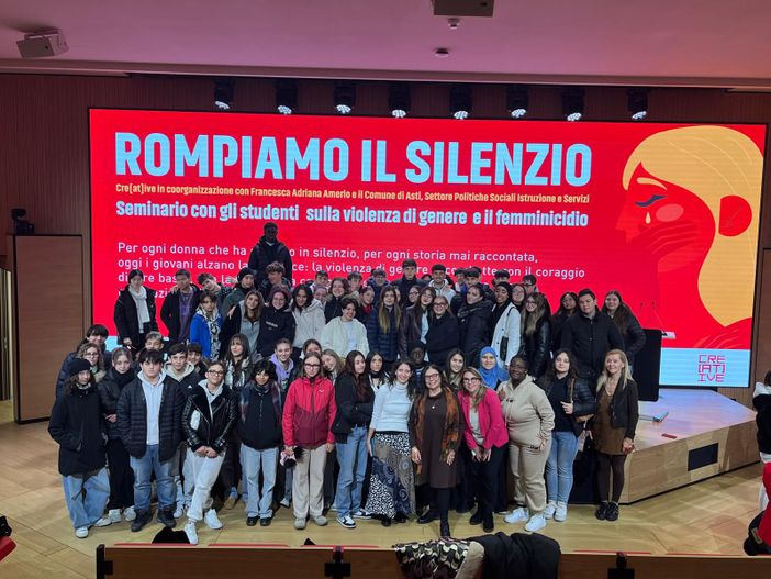 Nei giorni scorsi, l’Istituto Superiore “Vittorio Alfieri” di Asti ha accolto l’iniziativa “Rompiamo il Silenzio”, due intense giornate dedicate alla sensibilizzazione sul tema della violenza di genere, in collaborazione con Creative, il Comune di Asti – settore politiche sociali, istruzione e servizi educativi – e grazie al coordinamento di Francesca Adriana Amerio. L’evento ha rappresentato un’occasione unica per affrontare una problematica sociale di crescente attualità, offrendo agli studenti momenti di confronto con esperti qualificati in uno scenario d'eccezione: l’auditorium della Banca di Asti – Cassa di Risparmio di Asti.