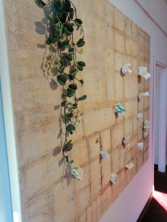 Ho portato l'installazione "Il muro dei desideri", che raffigura quel luogo sacro che è il Muro del Pianto di Gerusalemme, realizzata con malta calcarea a rappresentare le pietre nel periodo di Erode e le bruciature a fuoco a creare le fessure causate dal tempo. Ogni fedele, appartenente a qualsiasi religione, può recarsi al muro del pianto e riporvi un messaggio, inserendo un bigliettino di carta da consegnare alla sorte. I biglietti, dopo aver soggiornato sul muro, saranno trasferiti sul Monte degli Ulivi e mai distrutti porteranno fino al Dio di ognuno le proprie preghiere. Nella parte sinistra dell'opera è posta la pianta del cappero, che vive rigogliosa sul muro di Gerusalemme e simboleggia la vita. Ad accompagnare l'opera pittorica vi è la musica, che prende voce con la nona di Beethoven, suonata dalla Divan Orchestra, la quale riunisce giovani musicisti provenienti da tutti i paesi del Medio Oriente (Israele, Egitto, Giordania, Siria, Libano e Palestina). Questa sinfonia, a 432 Hz (la frequenza che parlerebbe al cuore di ogni ascoltatore) simbolo di libertà e gioia, è il tentativo più grandioso di Beethoven di aiutare l'umanità a trovare la propria strada fuori dall'oscurità e verso la luce, dal caos alla pace. La musica è dunque, come l'arte, un modo per unire le persone, perché "siamo tutti esseri umani uguali, con gli stessi diritti e doveri verso il prossimo e verso se stessi, che meritano pace, libertà, felicità e rispetto". Tutte le volte che dipingo ascolto la musica: le note di trasformano in colore. La musica è il catalizzatore dell’arte.