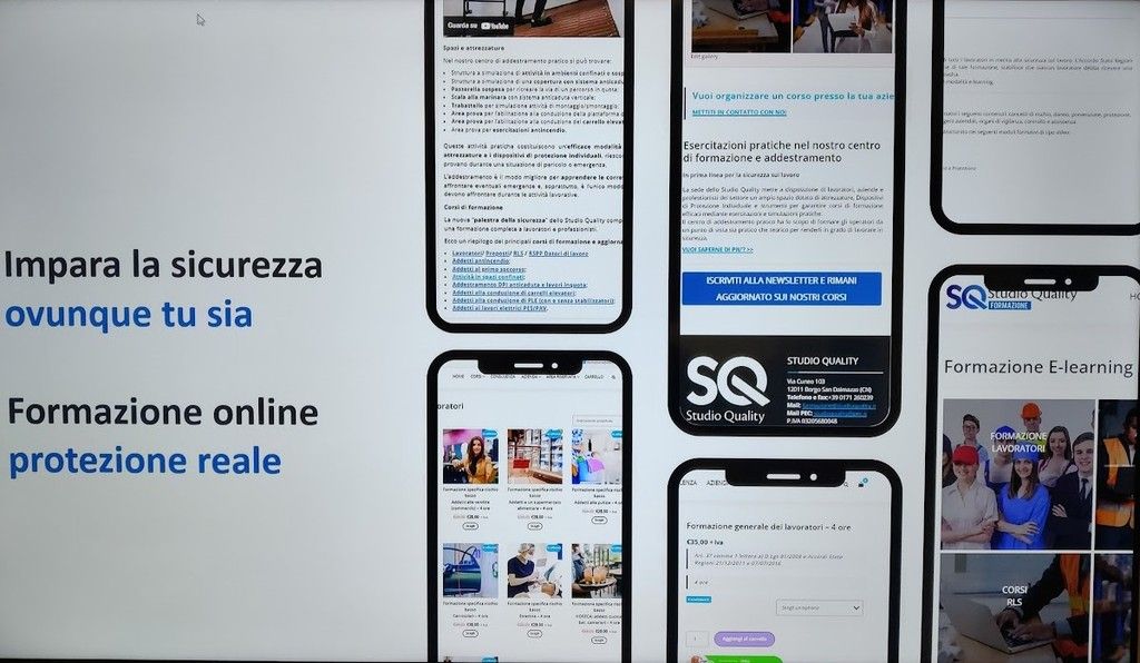 In qualità di Ente formatore accreditato dalla Regione Piemonte, Studio Quality eroga anche corsi di formazione in materia di salute e sicurezza sul lavoro. La sede principale di Borgo San Dalmazzo è dotata di una moderna e attrezzata area di addestramento progettata per ospitare corsi pratici specifici, tra cui lavori in quota, attività in spazi confinati, utilizzo di carrelli elevatori, piattaforme di lavoro elevabili e molte altre attività legate alla sicurezza sul lavoro.