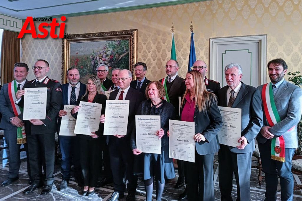 Il Prefetto Claudio Ventrice ha consegnato i diplomi, affiancato dai sindaci di Asti, Antignano, Moncalvo e Nizza Monferrato, comuni di residenza degli insigniti. Erano presenti anche le Autorità religiose, civili e militari del territorio.