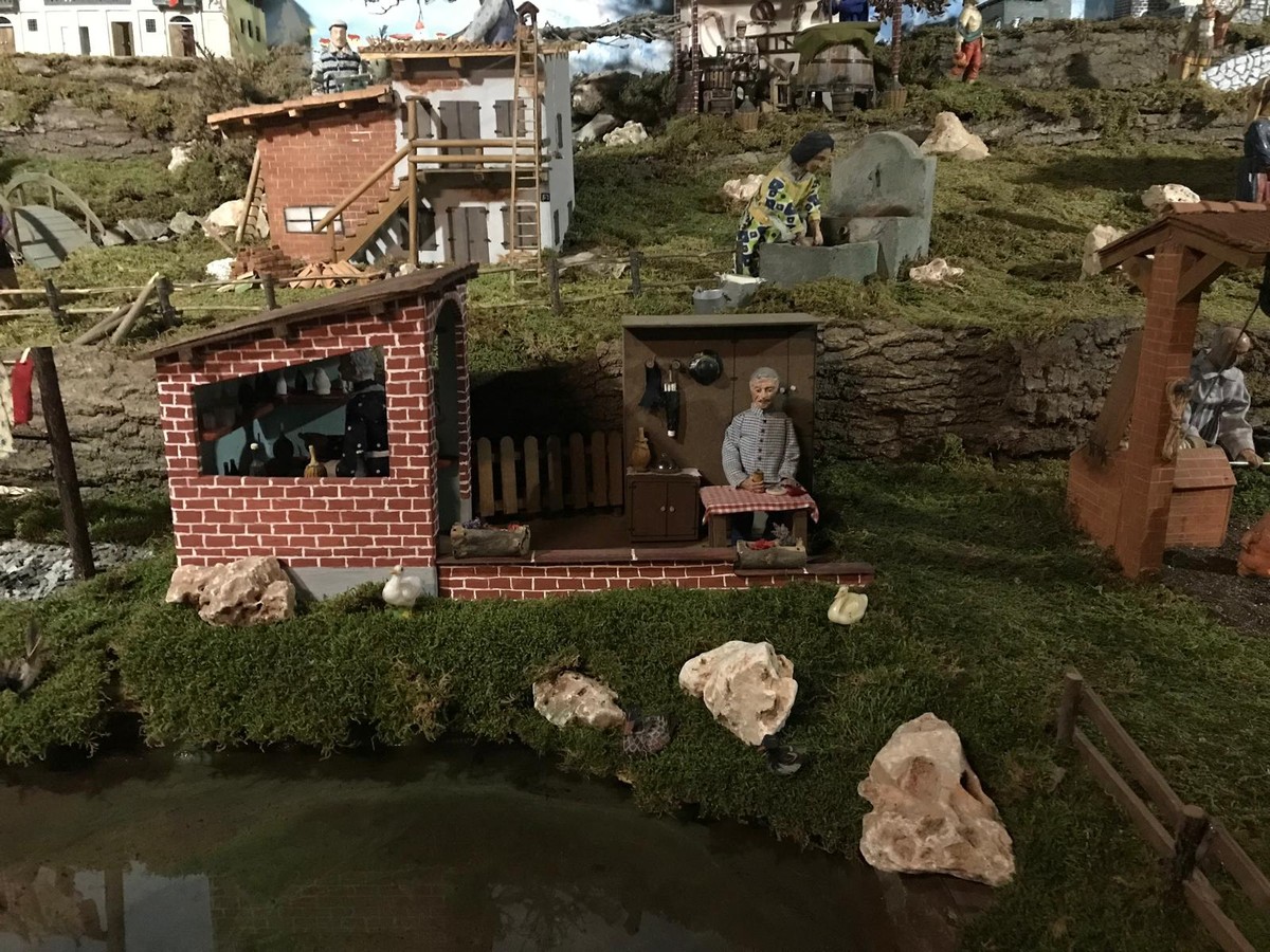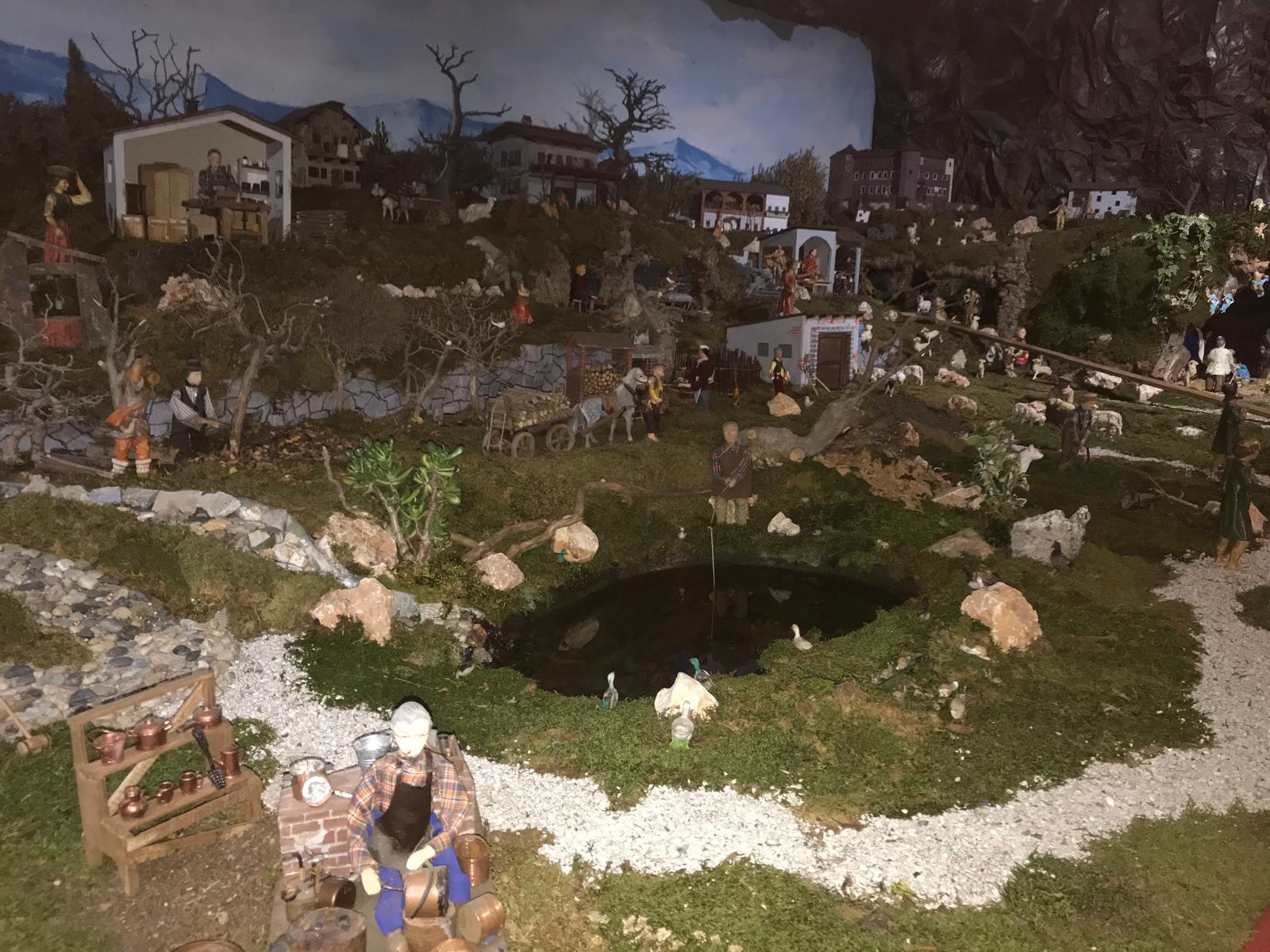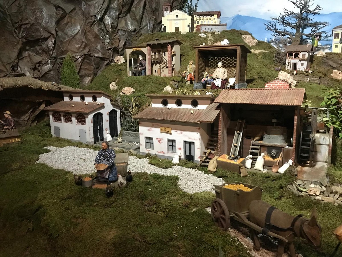 Attualmente si contano più di 120 statue in movimento, tutte realizzate artigianalmente dai componenti del gruppo. Questo allestimento rappresenta fedelmente i nostri tipici ambienti rurali (sia di pianura che alpini), facendo riaffiorare i ricordi dei mestieri che furono. Particolarità di questa rappresentazione è l’inserimento nel suo paesaggio di edifici del nostro paese: la parrocchia con la canonica, il Castello dei Solaro, il santuario della Madonna della Noce, l’ala comunale, l’asilo in tipico stile Liberty e il palazzo comunale.