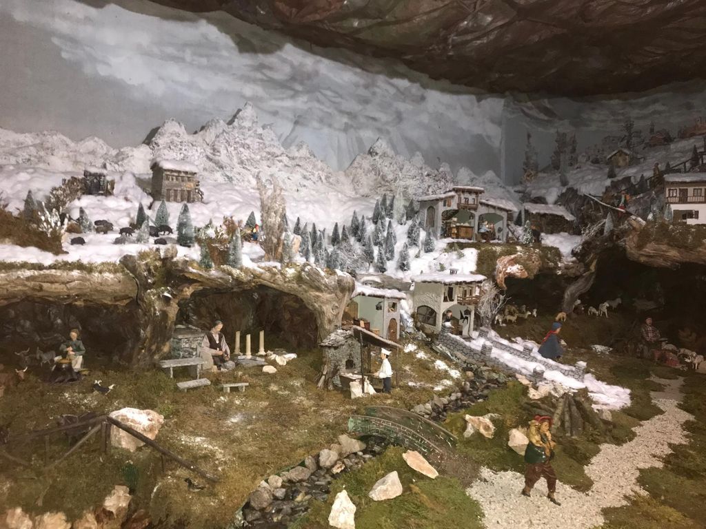Di notevole pregio storico è il gruppo ligneo dei magi, accuratamente scolpito a mano e risalente all’800. Di grande interesse e sempre molto apprezzata dai visitatori è la parte invernale che, con una realistica e copiosa nevicata, imbianca questa vallata animata da cervi, stambecchi, cinghiali e personaggi indaffarati a compiere le loro attività. Oggi il presepe copre una superficie di quasi 200 metri quadri e richiede circa 1200 ore di lavoro (a partire dalla seconda settimana di settembre).
