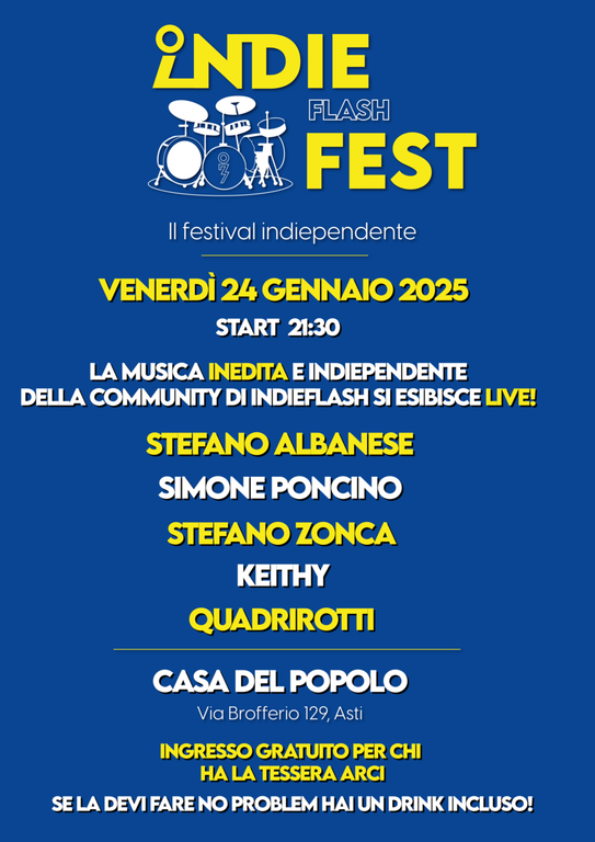 Organizzato dal progetto Indieflash, fondato da Andrea Guida, il Flash Fest ha l'obiettivo di valorizzare l'arte locale, dando spazio agli artisti indipendenti della community di Indieflash. Sul palco si alterneranno giovani promesse e musicisti più affermati, in una serata che promette emozioni e grande musica.