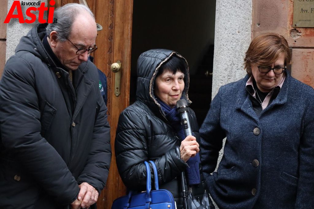 Sotto una leggera pioggerellina e tante persone attente e partecipi, in corso Alfieri 366 sono state posate le pietre per ricordare la famiglia di Camillo Luzzati, sfollati da Torino dove erano andati ad abitare dopo il matrimonio la figlia Estella 35 anni con il marito Italo Foà, 37 anni e il piccolo Guido di 8 anni, il più piccolo deportato astigiano.
