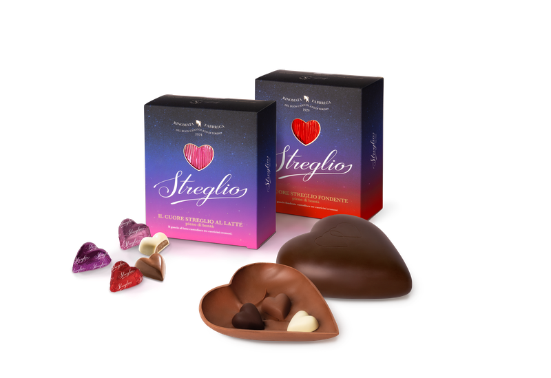 San Valentino è la festa dell'amore e delle emozioni più dolci, e quest'anno Streglio ha deciso di renderla ancora più speciale con un'idea raffinata e golosa: i nuovi Cuori Streglio. Disponibili nelle varianti cioccolato fondente o al latte, questi scrigni di bontà racchiudono un tesoro di piccoli cuori ripieni, ognuno con un'anima unica e irresistibile.