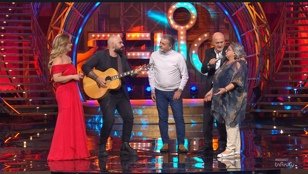 Durante lo sketch, Bisio, affiancato da Vanessa Incontrada, ha rivolto alcune domande a Mario ed Elena per dare spunto all'improvvisazione musicale di Elianto. "Ci hanno chiesto come ci siamo conosciuti, e Elena ha risposto 'grazie al Palio di Asti'", ha aggiunto Vespa, sottolineando come, inaspettatamente, sia emerso il nome della celebre manifestazione astigiana che per anni l'ha visto protagonista in un ruolo di primo piano. Il comico ha poi continuato a porre domande sulla loro quotidianità: "cose banali, come se io cucino e cosa fosse il risotto" aggiunge. Partendo da questi dettagli, Elianto ha dato vita a una canzone improvvisata che ha entusiasmato il pubblico del teatro.
