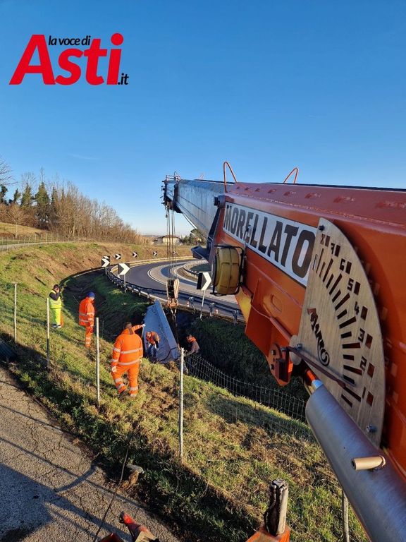 Asti, un camion perde per strada un blocco prefabbricato di circa 80 quintali