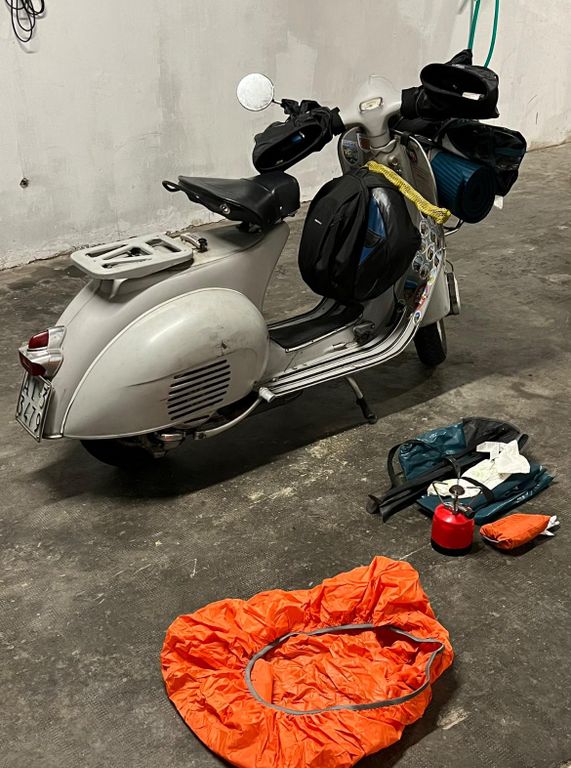 Come detto, Samuele anche quest'anno ha intrapreso il viaggio in sella ad una Vespa, che lui ha battezzato "Brunetta", percorrendo circa 800 chilometri all'andata e altrettanti al ritorno, affrontando nebbia e ghiaccio su strade statali e provinciali e senza mai 'mettere le ruote' su un'autostrada, ad eccezione dell'autobahn (autostrada federale tedesca) che si è 'concesso' a fine raduno per far tappa al lago di Costanza dove, scrive sarcasticamente sul suo profilo Facebook: "dopo due giorni, mi sono permesso addirittura il lusso di una doccia calda e un letto non di paglia".