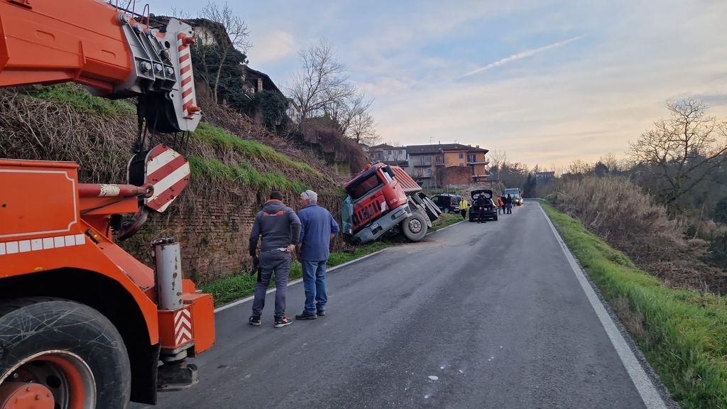 Un camion di circa 400 quintali è uscito autonomamente di strada a Cortiglione senza coinvolgere altri veicoli.