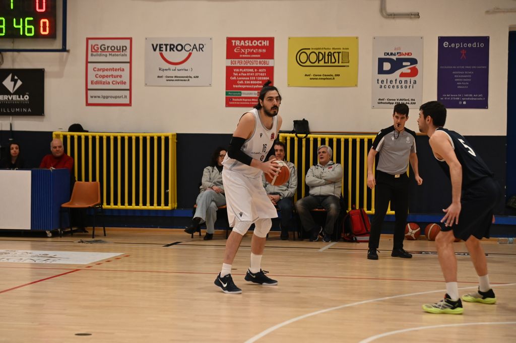 Dopo qualche minuto in cui le squadre si rispondono colpo su colpo, come era già avvenuto nell'incontro dell'andata, la formazione di coach Luca Granello prende il largo (16-29 dopo i primi 10 minuti) e incrementa in modo decisivo nel secondo periodo. A pesare sul 27-48 con cui le squadre vanno negli spogliatoi sono tanti i fattori, tra i quali sicuramente oltre ai meriti degli ospiti, un atteggiamento difensivo non impeccabile degli astigiani.