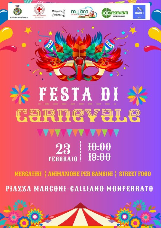 Domenica 23 febbraio, dalle 10 alle 19, si svolgerà la Festa di Carnevale di Calliano Monferrato.