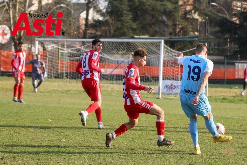 39' Raggio sugli sviluppi di corner raccoglie il pallone sul secondo palo e di controbalzo mette in difficoltà Brustolin coperto da molti uomini davanti, ma se la cava il capitano astigiano