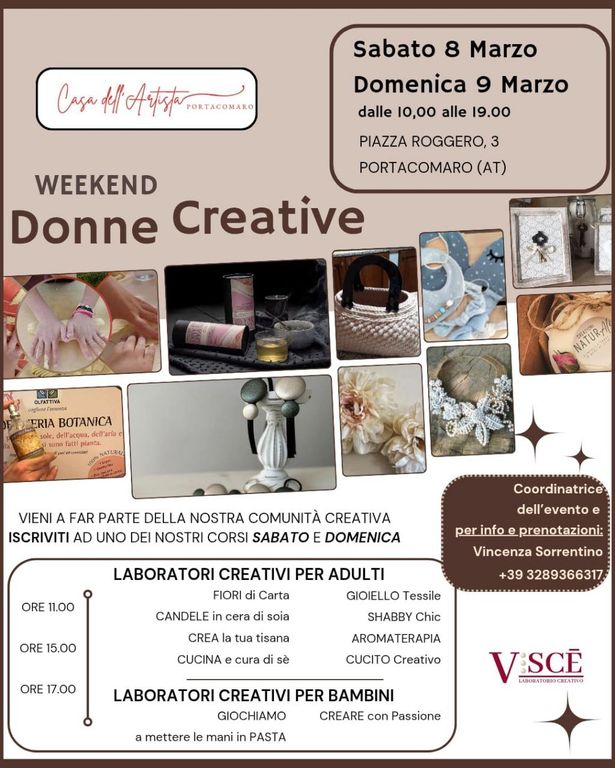 Il percorso continua il weekend successivo, l’8 e il 9 marzo, trasformando la "Casa dell'Artista" in un palcoscenico di espressione e incontro. Durante il “Weekend Donne Creative”, lo spazio ospiterà una serie di mostre e laboratori che invitano cittadini e cittadine a dare sfogo alla propria creatività, favorendo un clima di condivisione e partecipazione. L’evento, che pone al centro l’arte come strumento di trasformazione sociale, permette di connettere le esperienze personali con la dimensione collettiva del benessere emotivo e della solidarietà.