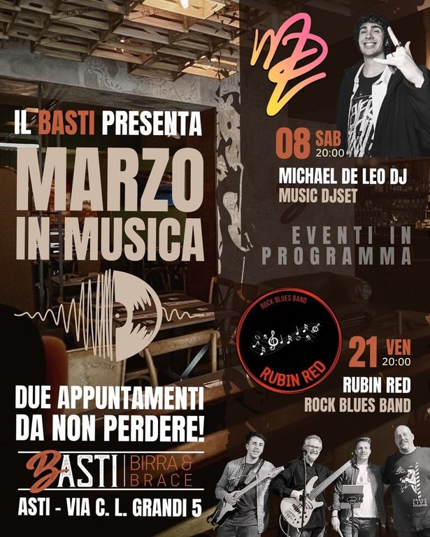 Un power trio rock con radici ben piantate nel territorio astigiano, ma con un suono che guarda oltre i confini provinciali. I Rubin Red, attivi ormai da ben 15 anni (la band si è formata il 6 gennaio 2011), tornano a calcare i palchi con due date consecutive: giovedì 20 marzo al Jazz Club di Torino (piazzale Valdo Fusi) e venerdì 21 marzo ad Asti, al Basti Birra & Brace (via Leon Grandi 5, ore 20).