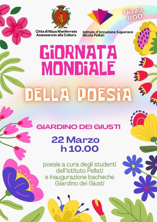 In occasione della giornata mondiale della poesia, sabato 22 marzo alle 10, presso il Giardino dei Giusti di Nizza Monferrato, verranno letti e recitati alcuni versi dagli studenti dell’istituto Pellati, guidati dalla professoressa Sara Ostanel, che già all’8 marzo in biblioteca, aveva proposto laboratori di poesia al femminile.