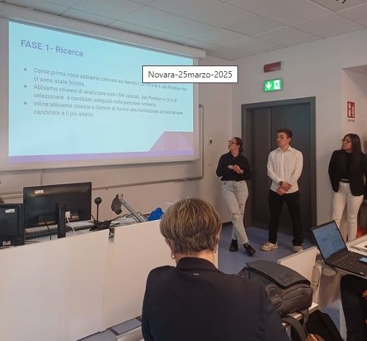 Le formazioni hanno esplorato il funzionamento del mercato del lavoro, le competenze per trovare il ruolo giusto, l’employee life cycle, ossia il percorso completo che un lavoratore compie all’interno di un’organizzazione, dall’assunzione alla conclusione del rapporto lavorativo. Per la sfida successiva alla formazione, i partecipanti, divisi in team da 5 fino a 8 persone, sono stati messi alla prova su un caso specifico: trovare una soluzione per migliorare il processo di selezione, assunzione, fidelizzazione dei dipendenti e dello sviluppo professionale, con l’integrazione di soluzioni di IA. Ad aggiudicarsi la vittoria dell’incontro di ieri, 26 marzo, il gruppo numero 2 costituito da Alessandro Gilio (Università di Torino), Francesco Cocola (Politecnico di Torino), Mattia Morgut (Politecnico di Torino), Ghazal Kordian (Università di Torino), Setayesh Pardis (Università di Torino). Il team vincitore del 25 marzo è il gruppo 6, costituito da Emanuele Marzone, Gianluca Mastrolonardo e Stefano Raviola del Corso Triennale di Informatica dell'Università del Piemonte Orientale.