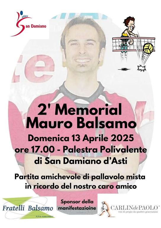 Sabato, presso la Palestra Polivalente, si terrà il “Secondo Memorial Mauro Balsamo”, una partita amichevole di pallavolo in ricordo del cittadino sandamianese prematuramente scomparso.