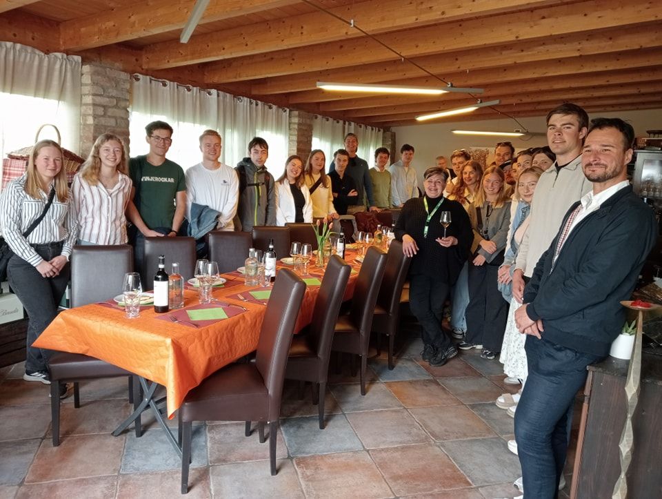 Successivamente, gli studenti si sono spostati all’Agriturismo I Salici Ridenti, dove Franca Dino – presidente di Turismo Verde Cia Piemonte – li ha accolti con un pranzo tipico del territorio, presentato in un impeccabile inglese. Il menù ha proposto piatti iconici della tradizione piemontese: vitello tonnato, insalata russa, salame rustico, lasagne e bunet, con varianti pensate per chi segue diete vegetariane, vegane o ha intolleranze alimentari.