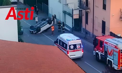 Asti: auto ribaltata in zona Fortino