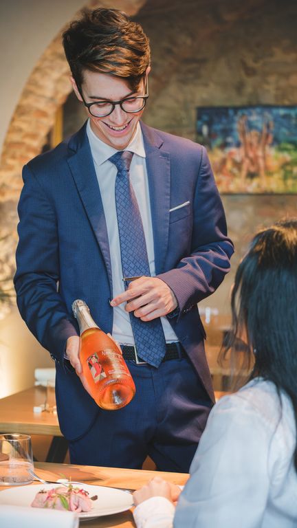 Ai ragazzi diciamo: rischiate, ma usate la testa. Il mondo lavorativo non è facile, ma serve prendersi quella percentuale di rischio. Il giorno in cui provi, se hai le idee chiare non potrà andare male. Qui siamo due teste che lavorano tanto, siamo entrambi appassionati di vino, ci confrontiamo tanto anche sui piatti. Prima di confezionare il menu assaggiamo tutto. C’è tanta ricerca, siamo entrambi braccia e mente. Oggi i nostri coetanei sono sempre attaccati a questo maledetto telefono. Staccatevi e rischiate, ricordando che il cameriere non è il portapiatti, ma la figura in grado di salvare la serata no, con spigliatezza e savoir-faire. Bisogna ricordarsi che senza cameriere il ristorante non va avanti. In generale, comunque, rubate il lavoro con gli occhi: imparate guardando e dagli errori degli altri, per non sbagliare. Lavorate a testa bassa e perseverate; se avete un obiettivo, l’unica cosa importante è raggiungerlo.