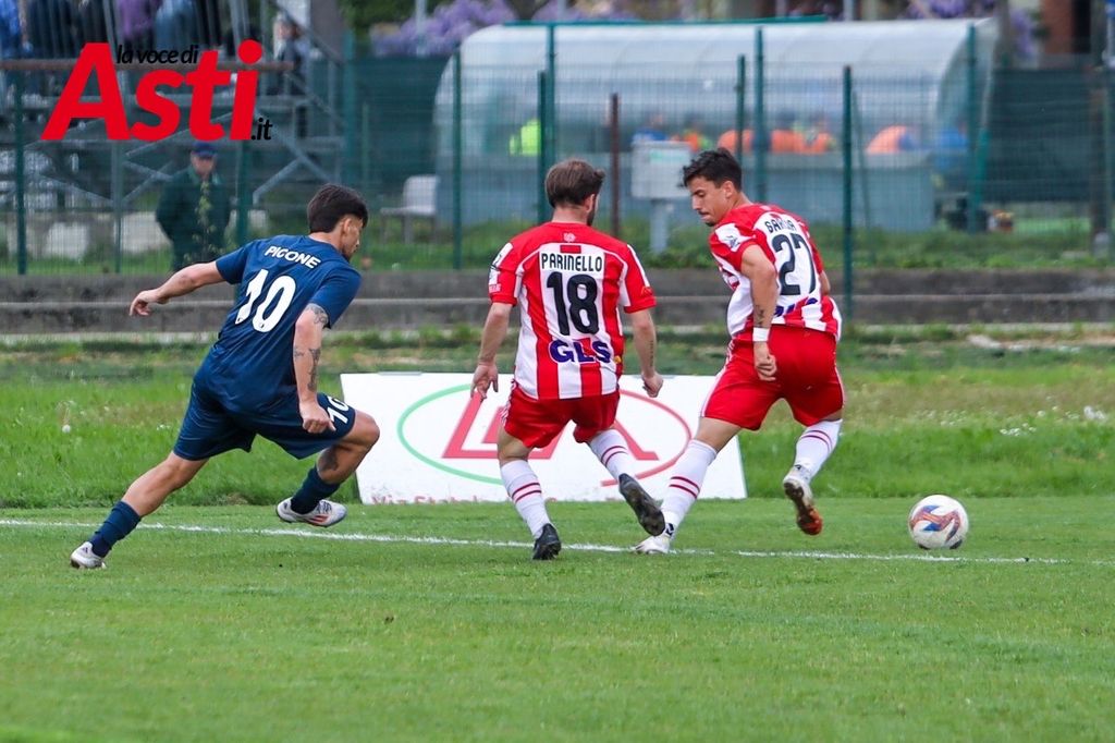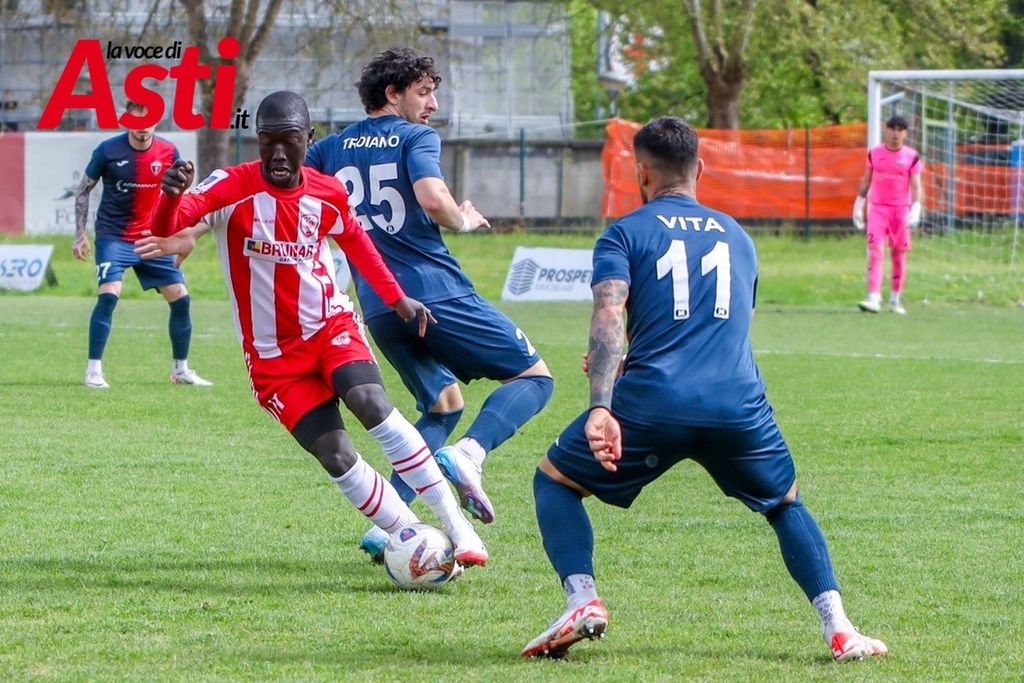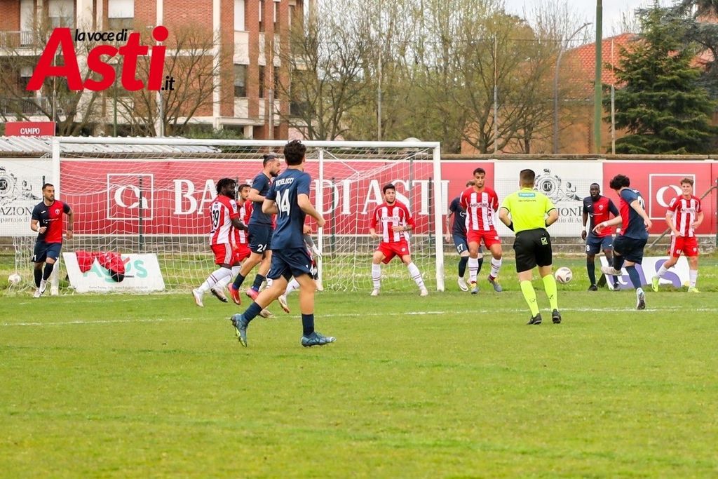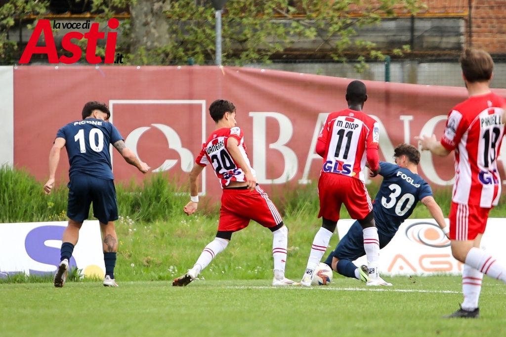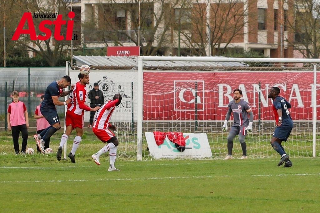 Pochi minuti più tardi è ancora il numero 11 ospite a sfiorare il raddoppio, ma Ricci salva sulla linea. L’Asti risponde al 67’: corner di Vanegas e colpo di testa vincente di Diop per l’1-1, che fa esplodere il “Censin Bosia”.