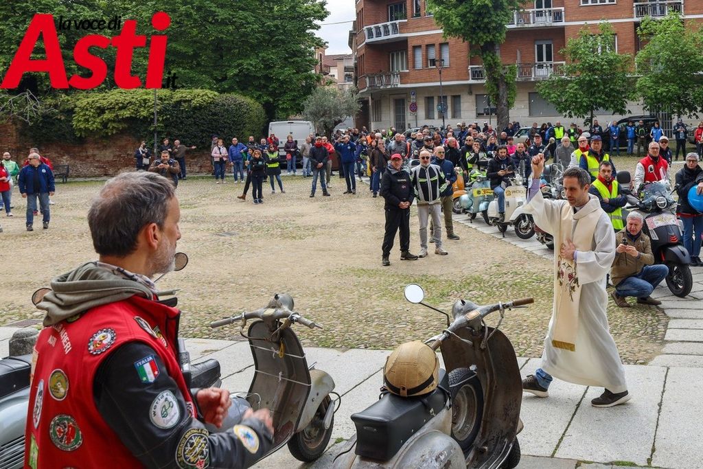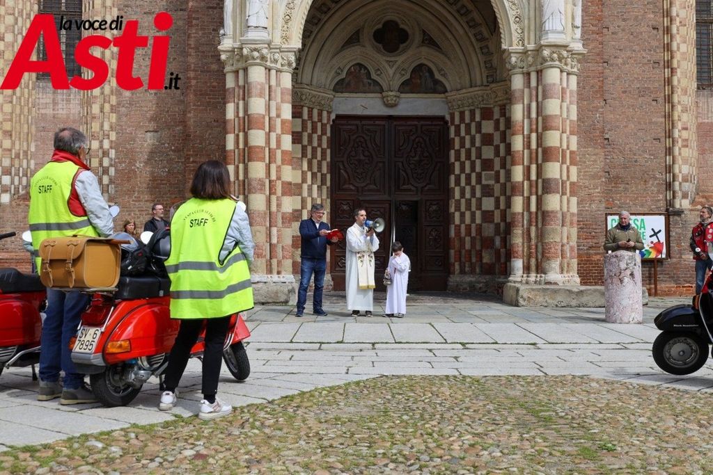 Successivamente, è seguita la cerimonia di benedizione delle circa 250 Vespe e dei vespisti, officiata da don Francesco, davanti alla Cattedrale di Santa Maria Assunta.