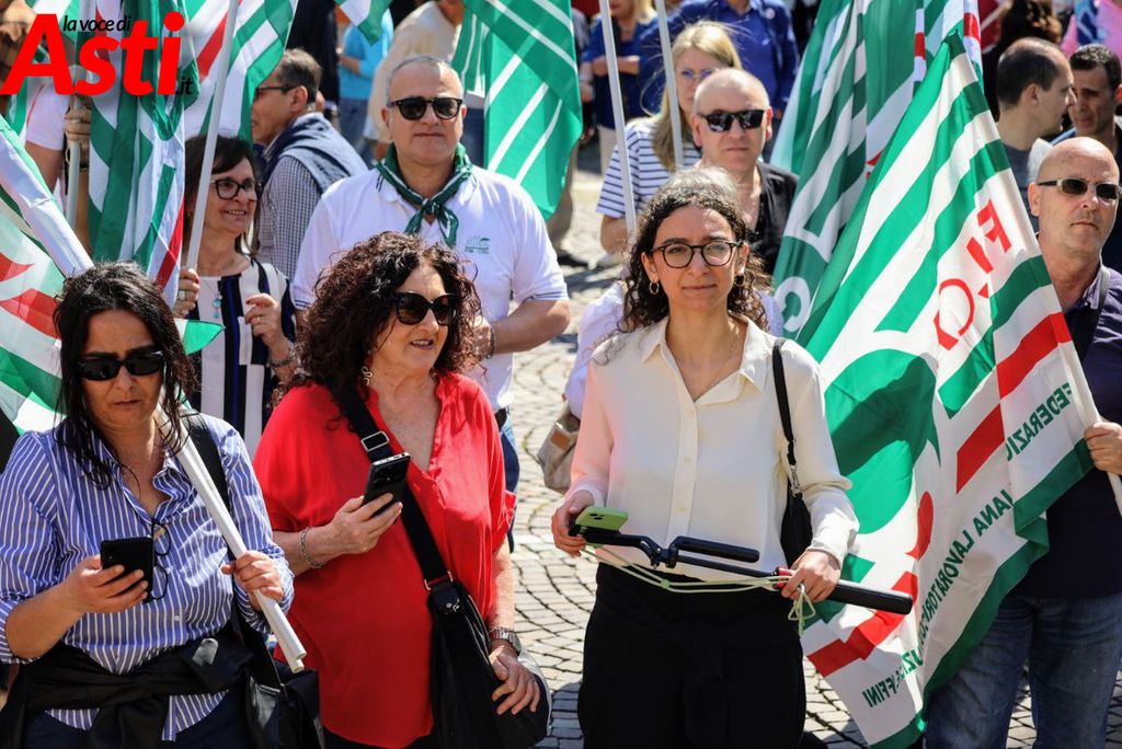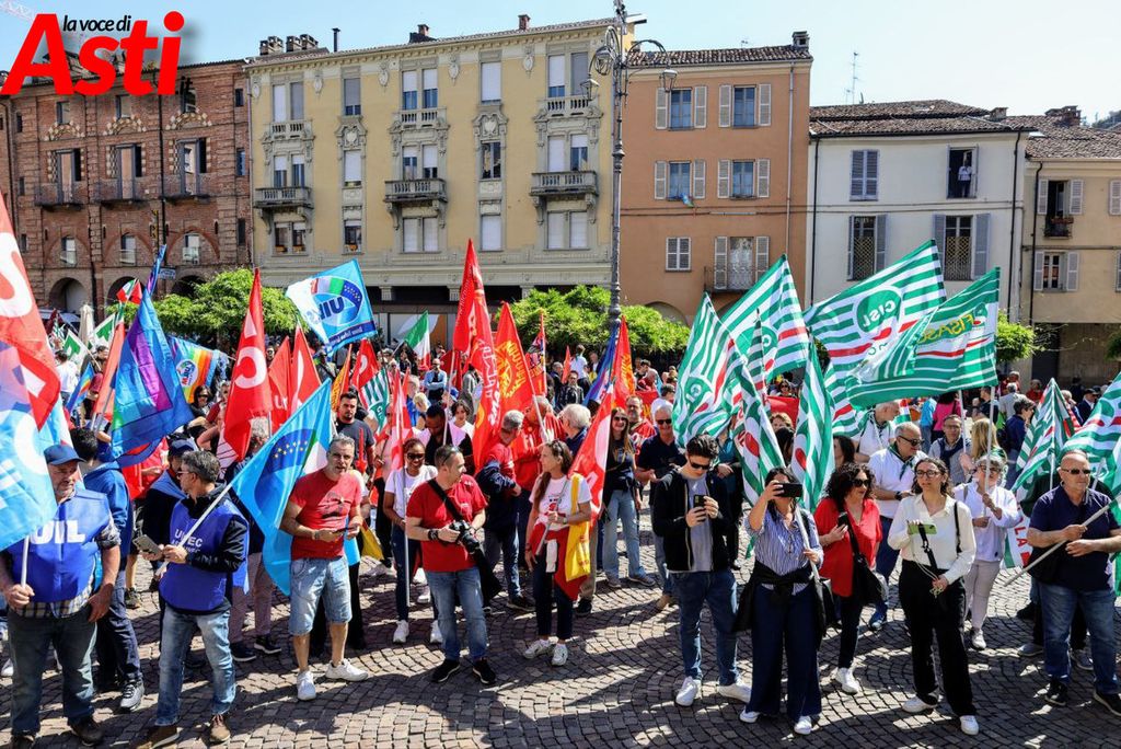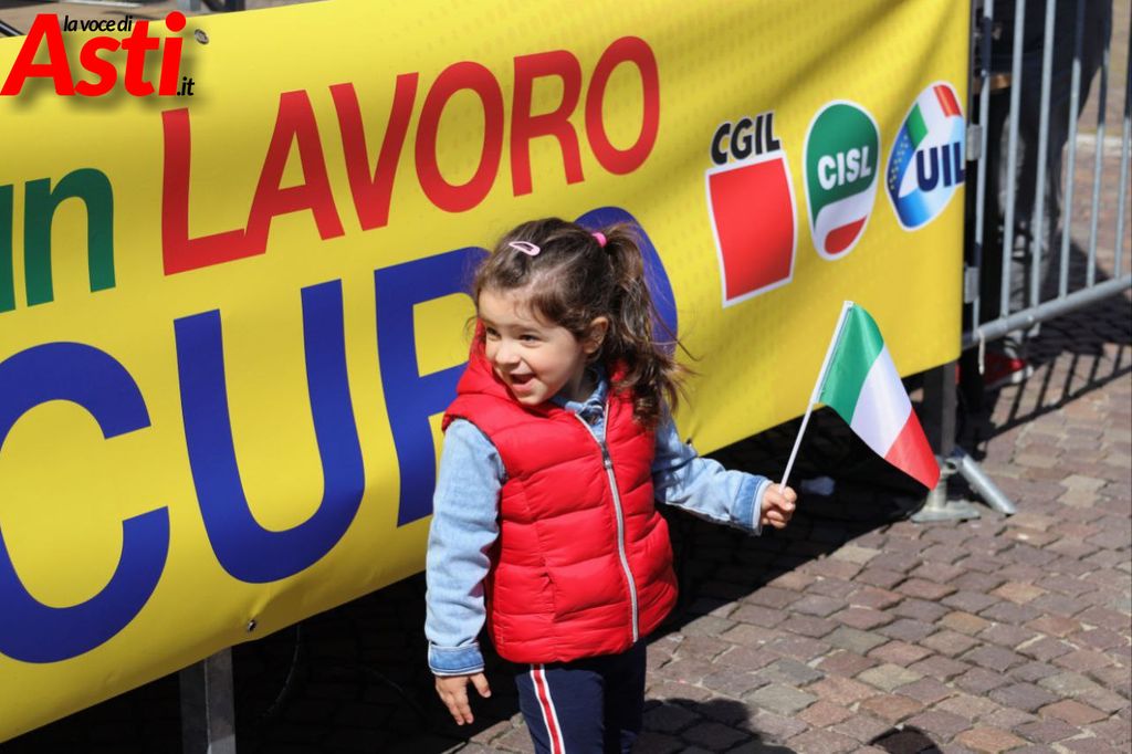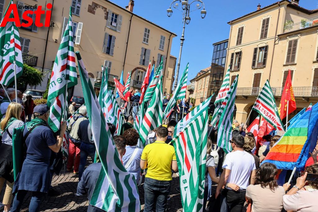 La piazza è quella astigiana, quella calda (non solo dal punto di vista delle temperatura), quella attenta alle parole e ai numeri di un Primo maggio che si concentra sulla sicurezza sul lavoro. Una manifestazione che, se lontana dai numeri di partecipazione del passato (circa un migliaio oggi al corteo e comizio), tocca temi molto attuali (purtroppo) come la precarietà e le morti sul lavoro.