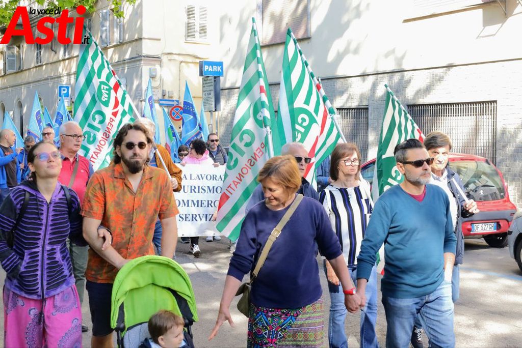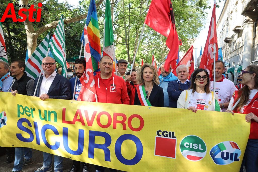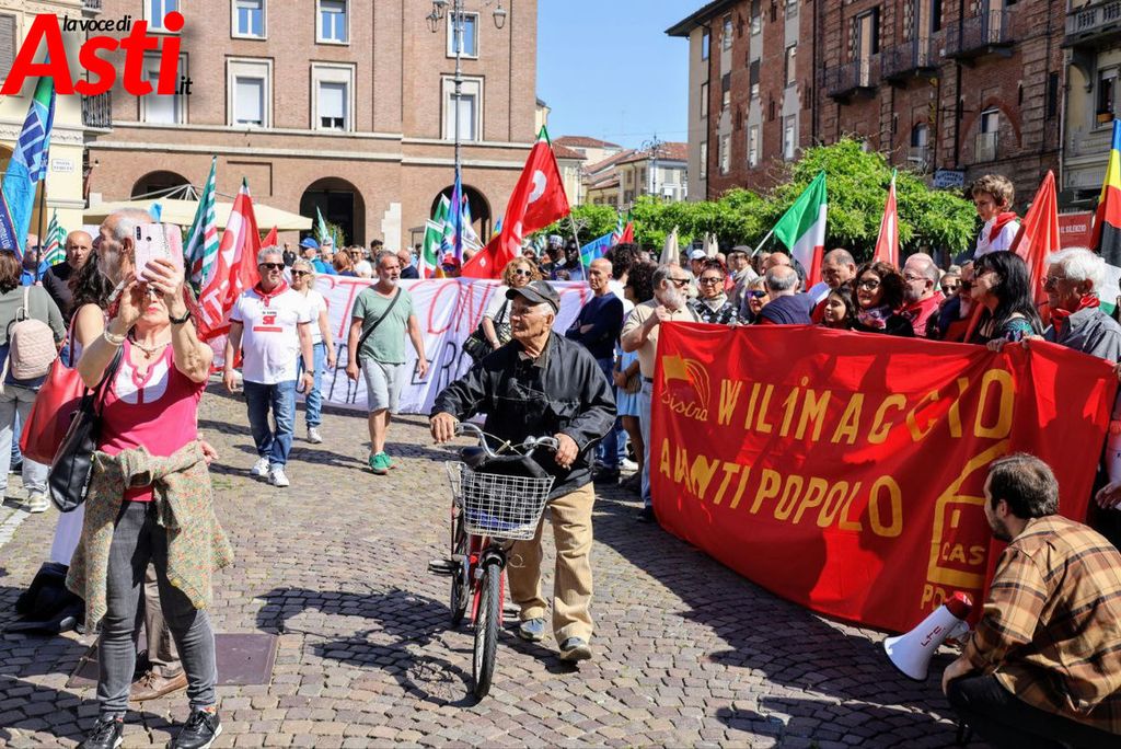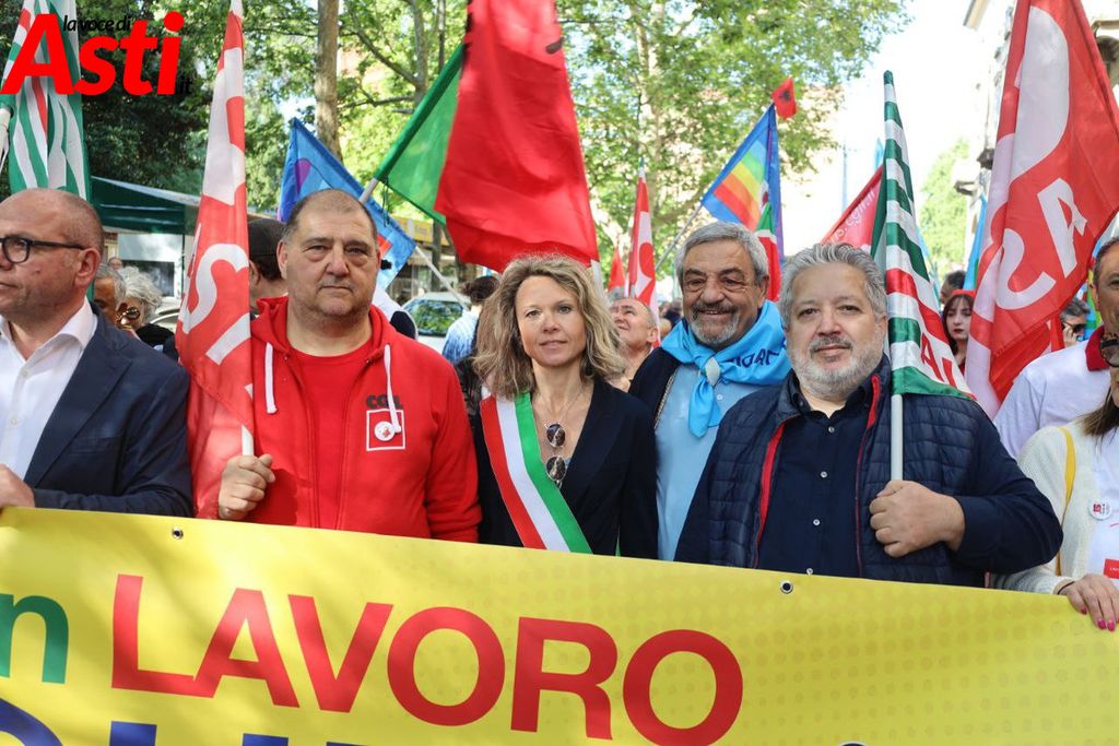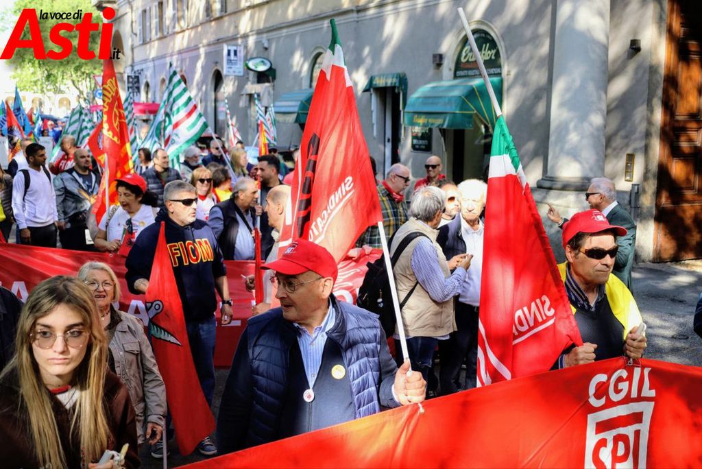 La piazza è quella astigiana, quella calda (non solo dal punto di vista delle temperatura), quella attenta alle parole e ai numeri di un Primo maggio che si concentra sulla sicurezza sul lavoro. Una manifestazione che, se lontana dai numeri di partecipazione del passato (circa un migliaio oggi al corteo e comizio), tocca temi molto attuali (purtroppo) come la precarietà e le morti sul lavoro.