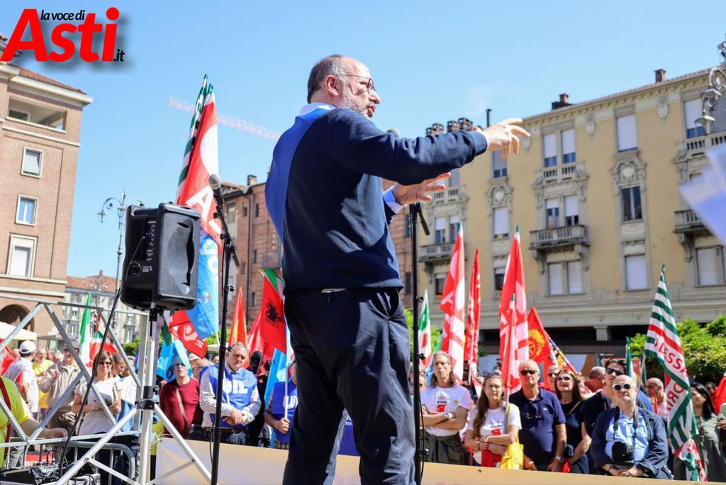 Discorso apprezzato dal segretario Airaudo che ha parlato a nome di Cgil Cisl e Uil: "Lo prendiamo in parola perché il mondo del lavoro piemontese, il mondo del lavoro astigiano, il mondo del lavoro in Italia ha bisogno di sostegni e di cambiamento e ha bisogno di farlo velocemente perché nei primi 4 mesi di quest'anno sono morti 136 lavoratori in Italia. Erano 119 un anno fa, il 16% in più in un anno. In Piemonte nei primi 4 mesi sono 20 perché le statistiche che si fermano ai 4 mesi, ma in verità siamo già a 21, purtroppo. E gli infortuni in Piemonte sono passati da 42.000 a 43.000. Ci si muore di lavoro, si muore nel lavoro, ci si ammala nel lavoro".
