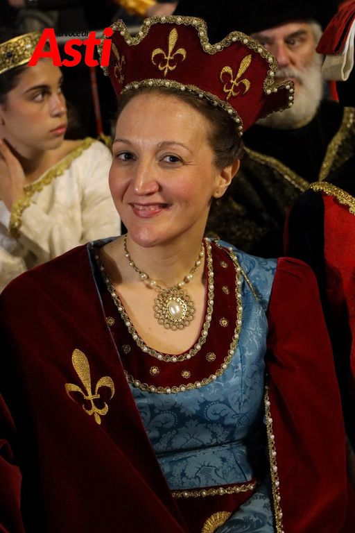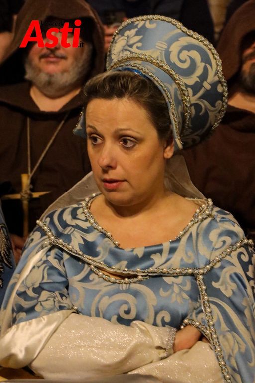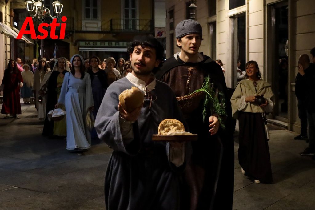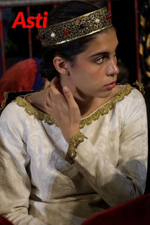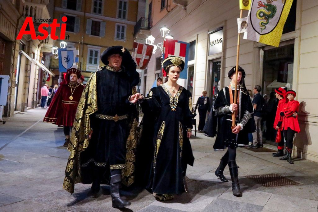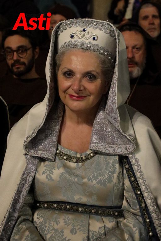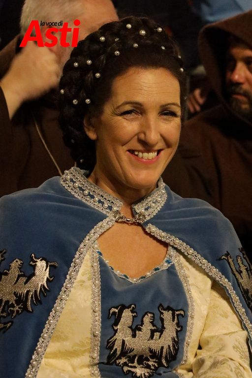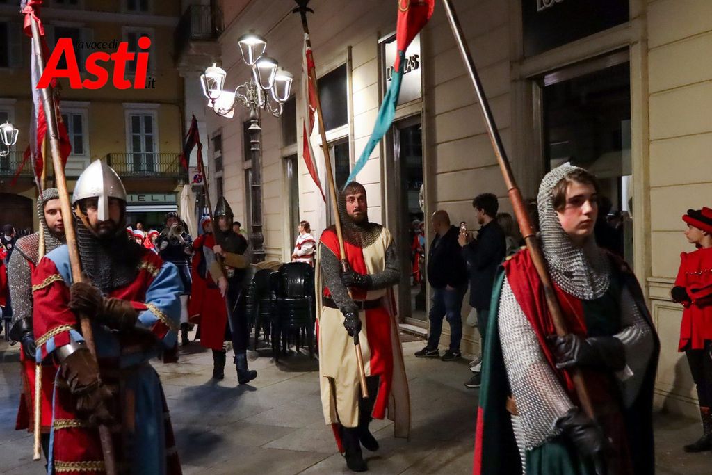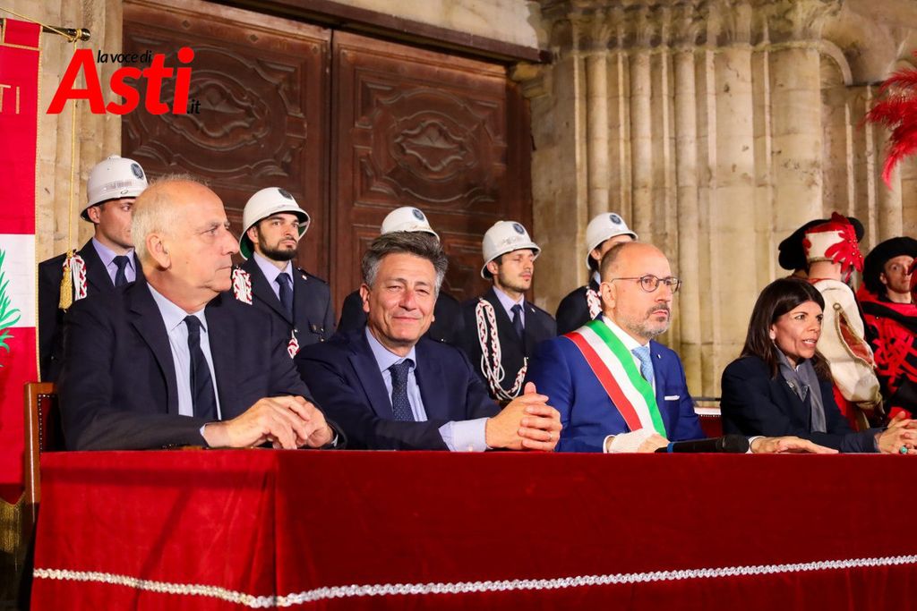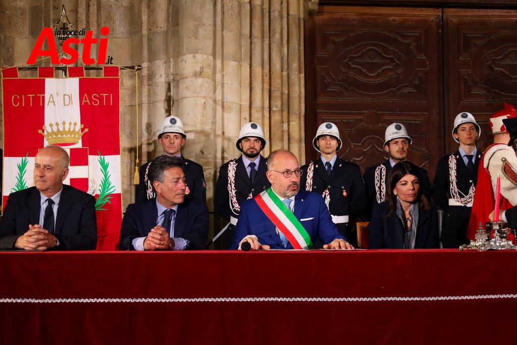 A rendere ancora più ricco il quadro simbolico, la scritta latina "Sicut Fieri Solet Ast, in festa Beati Secundi" (Come si è soliti fare ad Asti nella Festa di San Secondo) tratti dal memoriale del Ventura del 1275 e testimonianza scritta più antica della corsa - un richiamo esplicito al 750° anniversario del Palio - disputato attorno alle mura di Alba in segno di scherno per la città rivale.