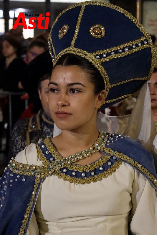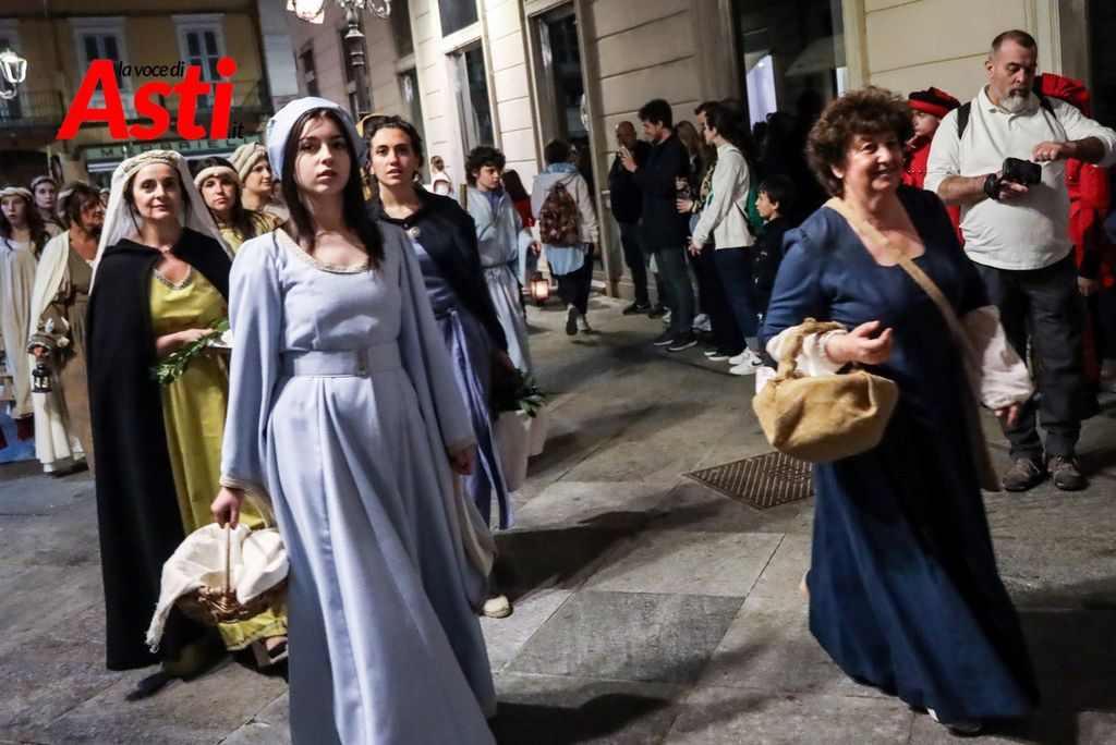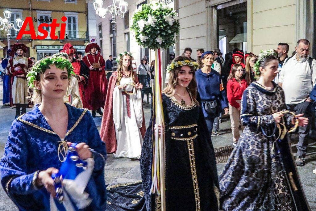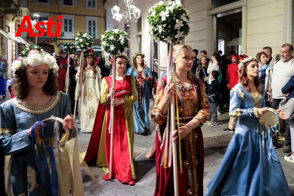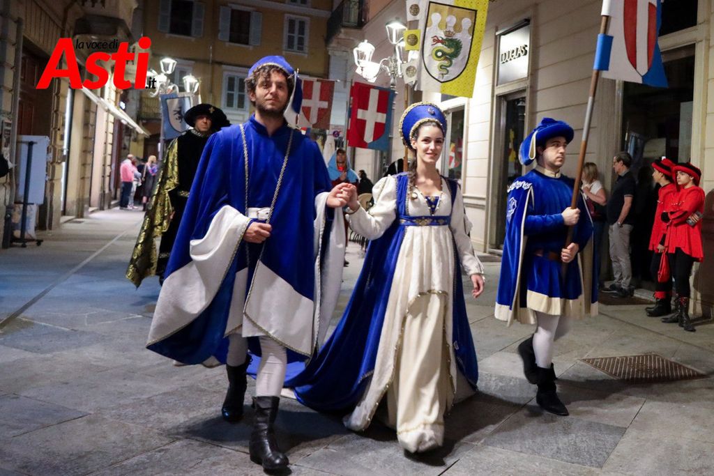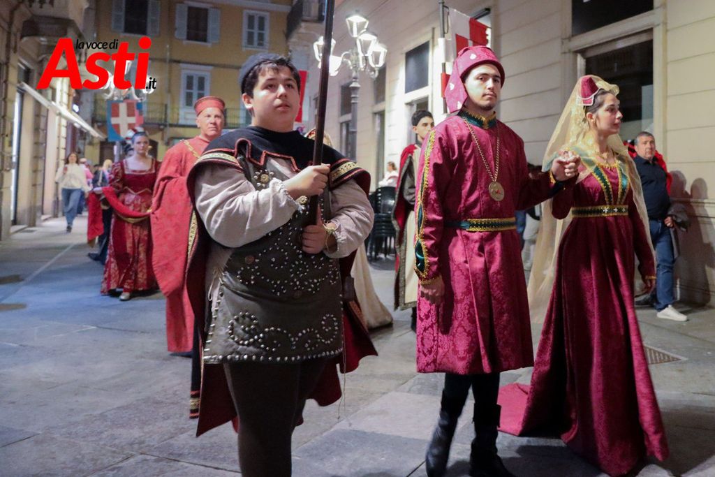 A colpire immediatamente l’occhio sono le tonalità predominanti del sendallo: oro e bianco dominano la scena, con accenti più scuri nella parte superiore. Un richiamo, per alcuni, al Rione San Silvestro, che non conquista la vittoria dal lontano 1992. Ma l’analisi non si ferma al colore: la cornice che circonda l’immagine di San Secondo a cavallo è decorata con strisce laterali rosa e azzurre – un accenno forse a Santa Maria Nuova – mentre il motivo floreale, rosso e giallo, potrebbe evocare Nizza o San Paolo.