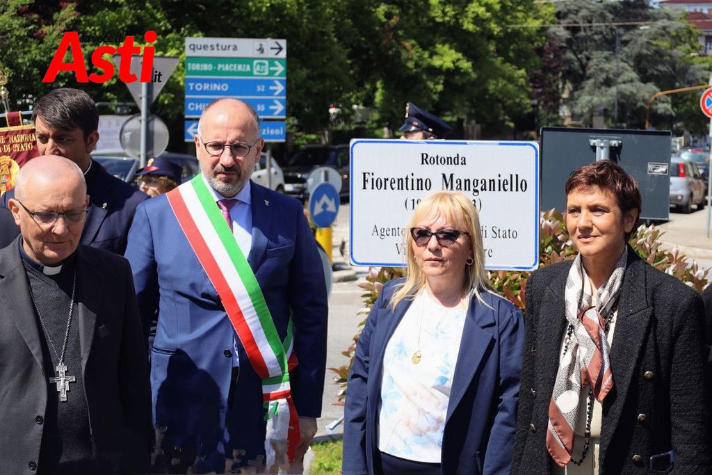 L’idea è nata dalla volontà del presidente e dei soci della sezione astigiana dell’associazione nazionale della Polizia di Stato, sostenuti dal questore della provincia di Asti, che hanno attivato l’iter amministrativo presso il Comune per dedicare all’agente Manganiello la rotatoria situata nei pressi della sede della Questura. Manganiello, originario della Campania, perse la vita a soli 22 anni, il 15 novembre 1983, mentre svolgeva il proprio servizio ad Asti.