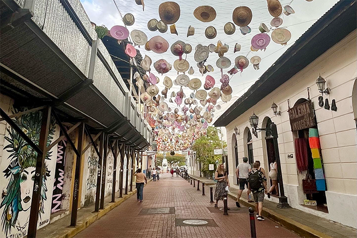 Il luogo più famoso e visitato della città è il Casco Viejo, il quartiere storico affacciato sull’oceano; dimenticato per decenni, oggi è stato in gran parte restaurato. Le facciate coloniali brillano, i portoni in legno si aprono su boutique, hotel di charme, caffè raffinati. Ogni angolo è “instagrammabile”. Le strade profumano più di turismo che di quotidianità. Eppure conserva ancora qualcosa di vero, tra passato e rinascita. “Camminarlo” è come leggere un romanzo con due protagonisti. Accanto alle terrazze affollate di turisti, alcune famiglie panamensi continuano ad abitare qui, dove il bucato steso alle finestre sembra sventolare come una silenziosa bandiera di resistenza. Il Casco Viejo parla spagnolo e inglese: una vecchia L'Avana che ha imparato a flirtare con gli Stati Uniti. Le chiese – come quella di San Francisco de Asís o la Catedral Metropolitana – invece non guardano al futuro, ma raccontano le cicatrici di terremoti e rivoluzioni. Lungo le navate si sente ancora il respiro antico della storia, tra impalcature di restauro e flash fotografici. Al tramonto, la città si solleva. I Roof-Top si riempiono: cocktail, musica, occhi puntati sull'orizzonte. Da una parte, il porto e l'oceano; dall'altra, i grattacieli sfavillanti di luce. Ma poi la festa finisce, si scende in strada e le distanze tornano visibili.