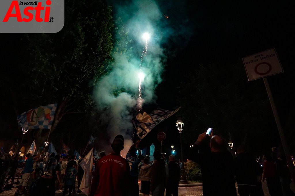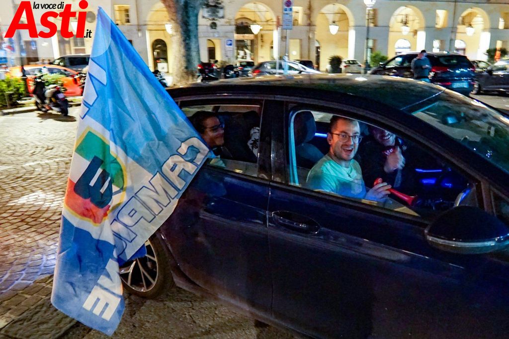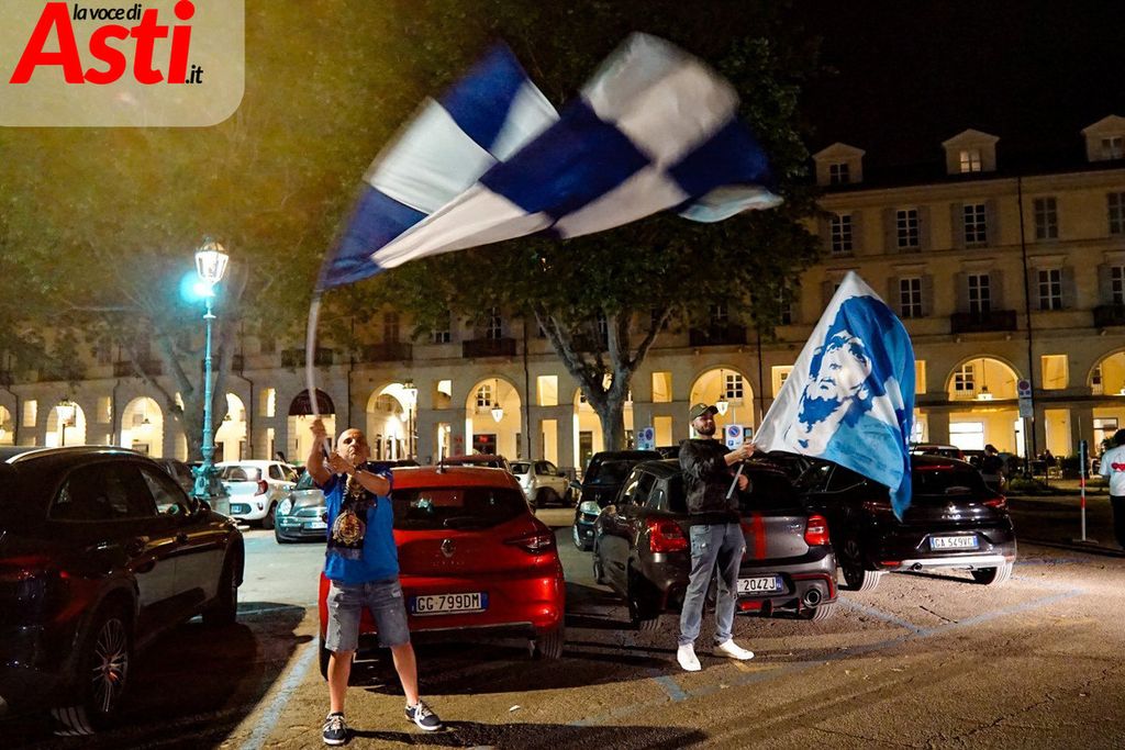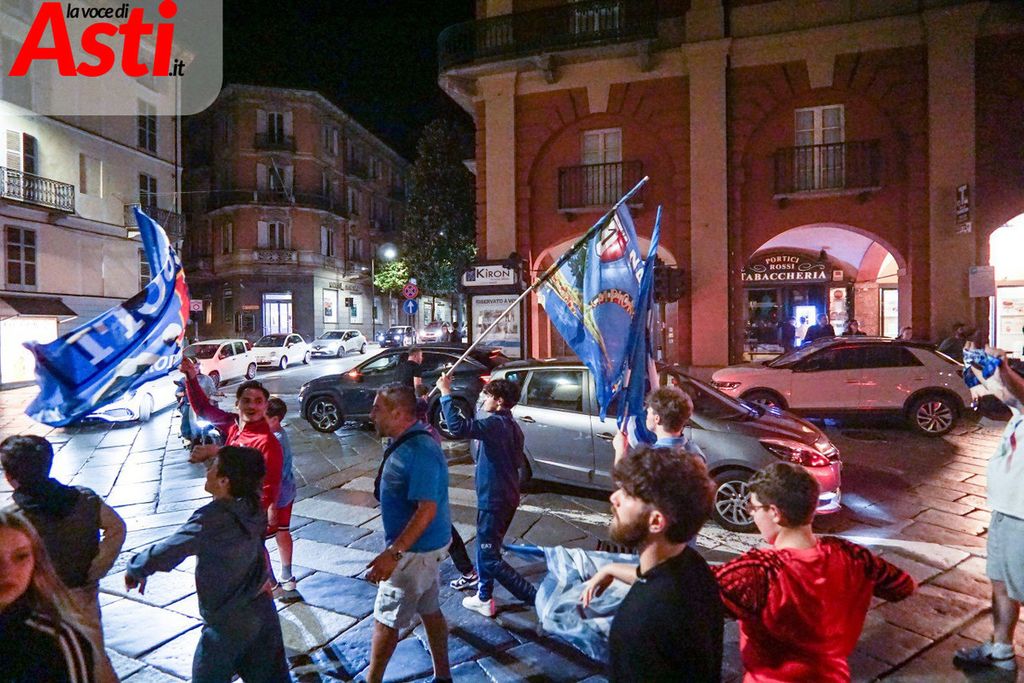 Festa non solo in piazza Plebiscito che è ancora "senza voce", ma anche in una piazza Alfieri di Asti che si è vestita di azzurro fino a tarda notte. Lacrime, abbracci, cori , caroselli, fuochi d'artificio che, in alcuni casi, hanno costretto i vigili del fuoco a intervenire.