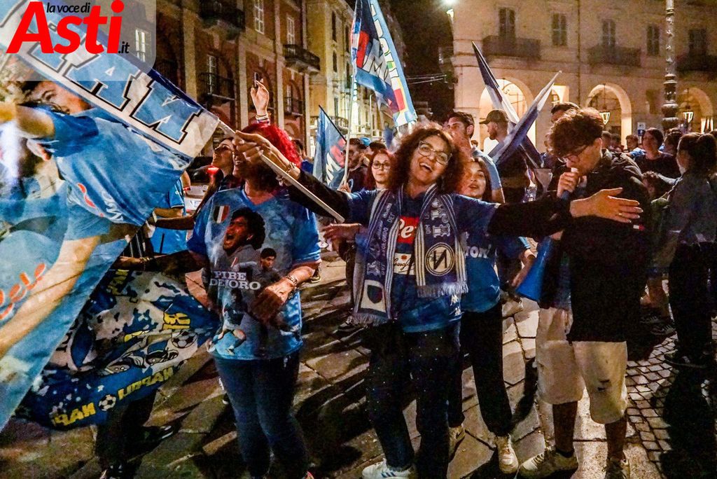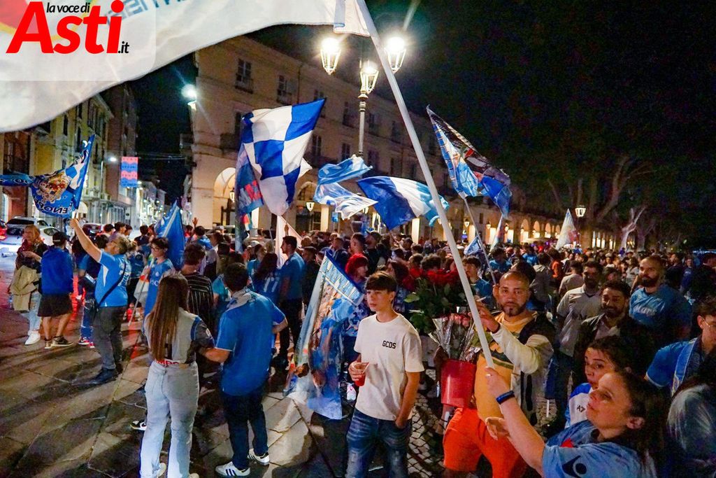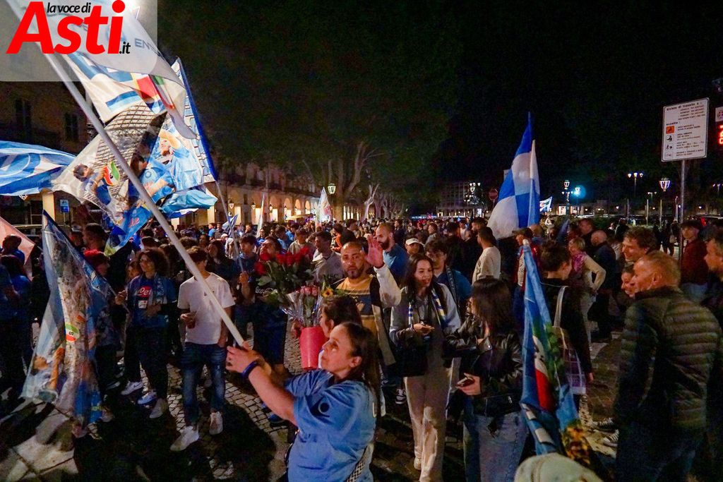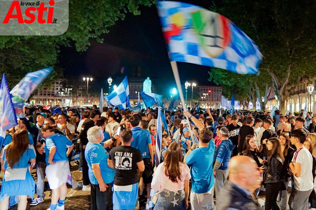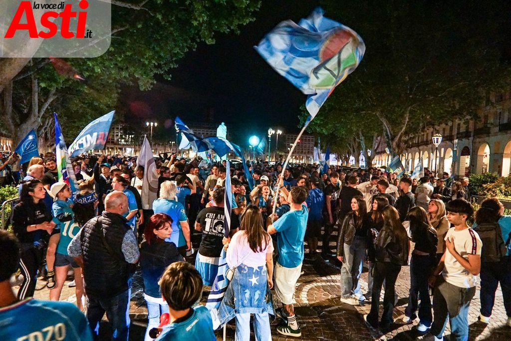 Una festa incredibile, una festa dello sport e del calore, quella che si è consumata ieri sera anche sulla piazza astigiana per festeggiare il quarto scudetto (secondo in tre anni) del Napoli. Esplode di festa il Maradona con i gol di McTominay nel primo tempo e Lukaku nella ripresa.