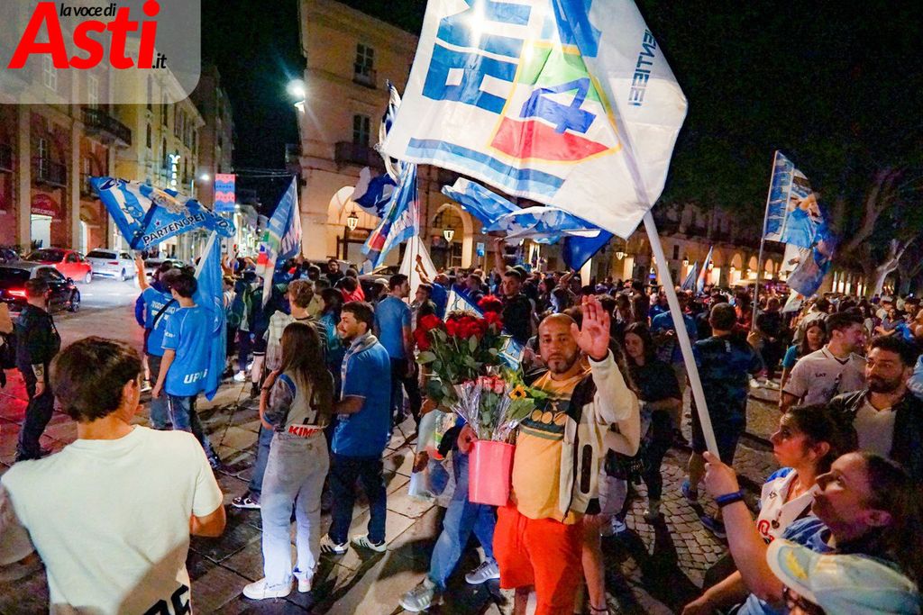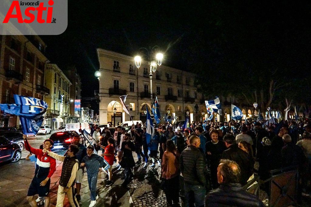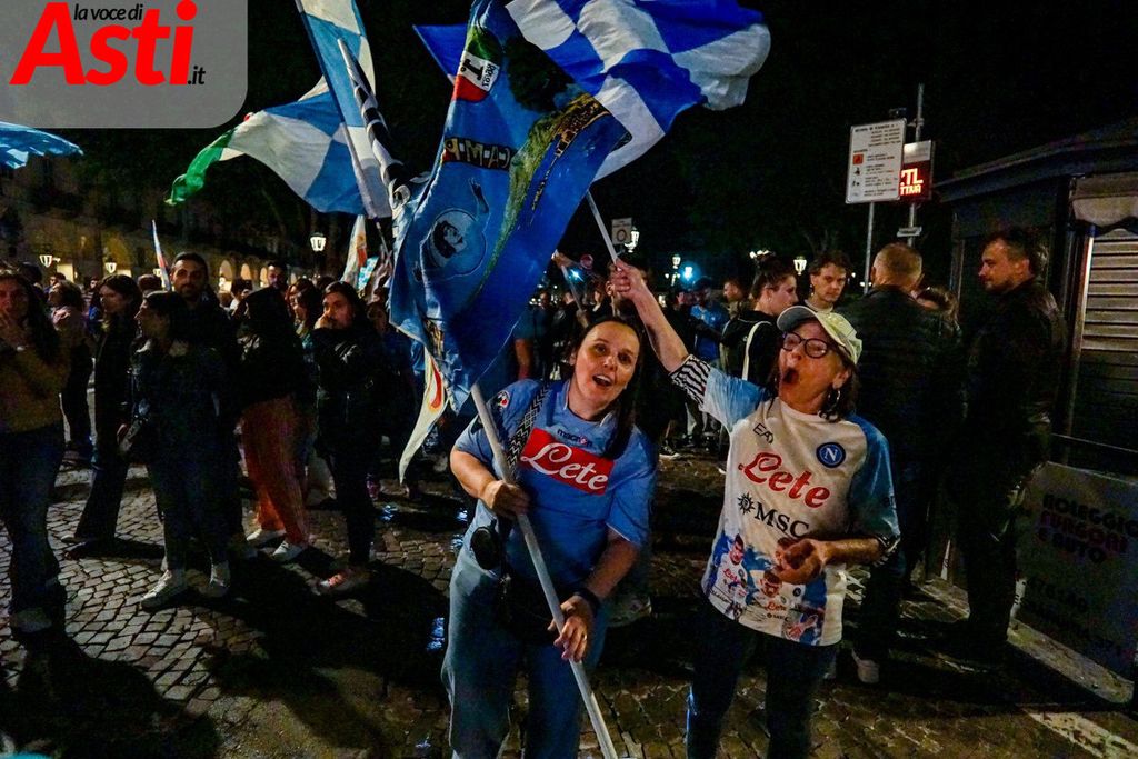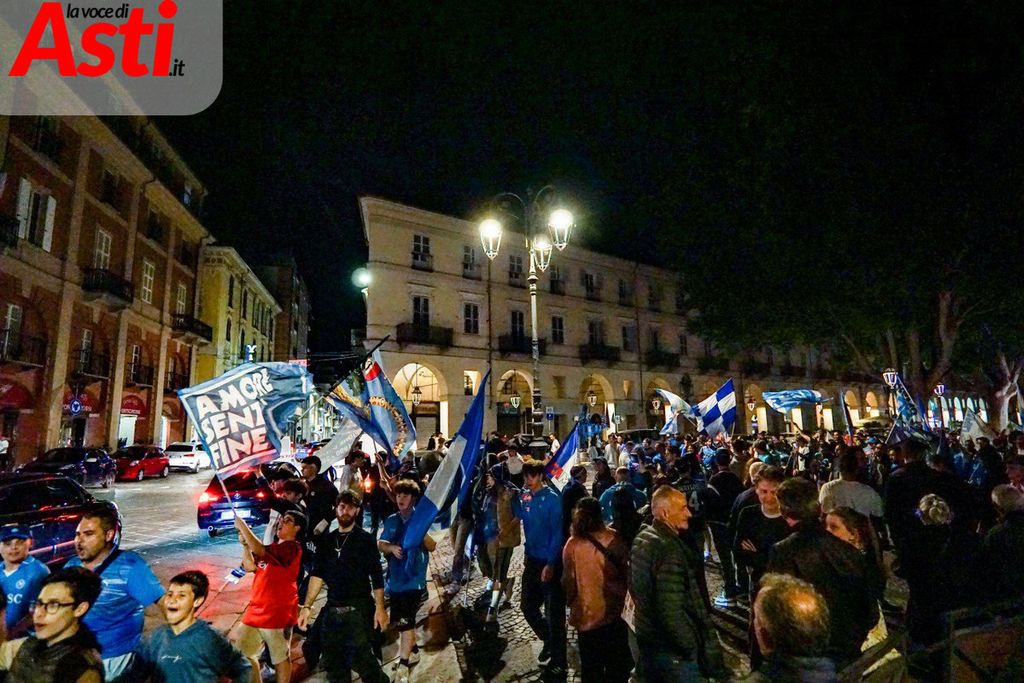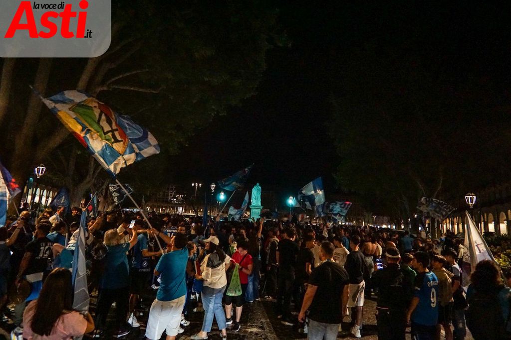Una festa incredibile, una festa dello sport e del calore, quella che si è consumata ieri sera anche sulla piazza astigiana per festeggiare il quarto scudetto (secondo in tre anni) del Napoli. Esplode di festa il Maradona con i gol di McTominay nel primo tempo e Lukaku nella ripresa.