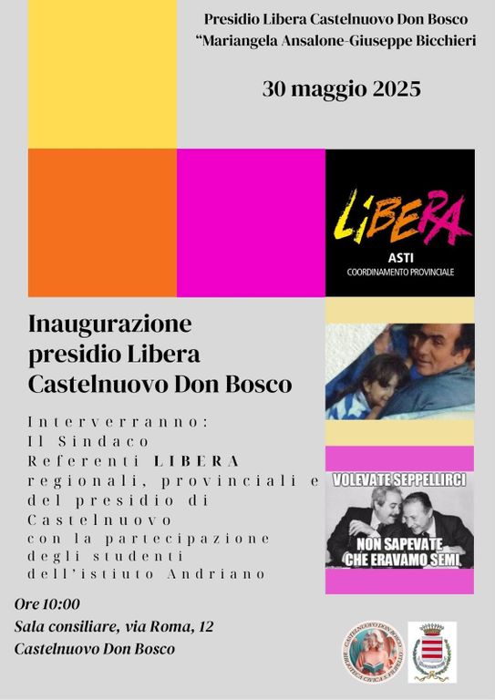 A Castelnuovo, proprio nell’anno in cui ricade il ventennale dalla nascita del Coordinamento Provinciale di Libera Asti, viene inaugurato il primo Presidio territoriale nato fuori dalla città.
