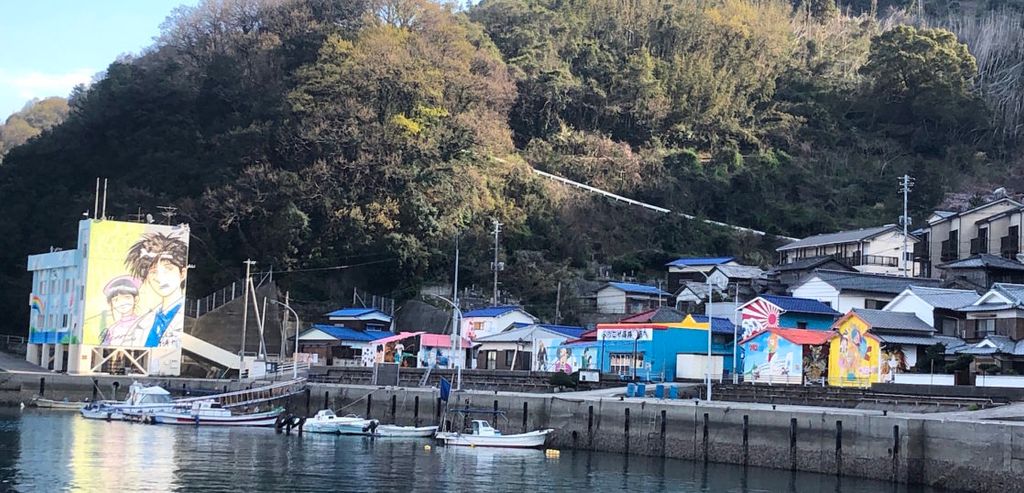 Nel 2016, quando è stato deciso di decorare l’esterno di molti degli edifici disabitati dell’isola, Kimura e Hasebe hanno scelto di farlo utilizzando disegni manga. Hasebe ha consultato il celebre fumettista Takatoshi Yamada, autore della popolare serie Dr. Koto Shinryoujo, guarda caso anch’essa ambientata in un’isola remota.