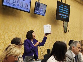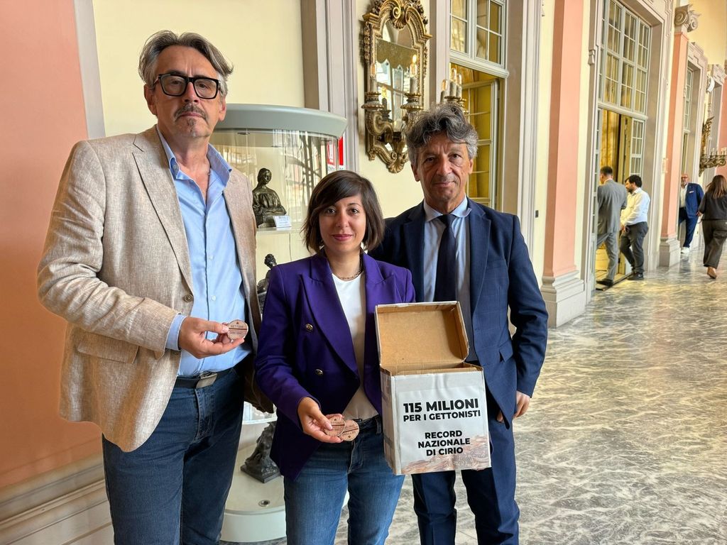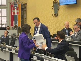 E dopo lo scontro di questa mattina con il consigliere regionale del Pd Mimmo Rossi, l'assessore alla Sanità Federico Riboldi è stato di nuovo oggetto di un attacco. La capogruppo del M5S Sarah Disabato ha consegnato all'esponente della giunta una scatola piena di “gettoni” di carta. "Lo abbiamo fatto per denunciare la deriva di questa Giunta, capace nel 2024 - come attestato dalla Corte dei Conti, che ha bacchettato la Regione - di spendere oltre 115 milioni di euro per le cooperative di gettonisti, addirittura di più della vicina Lombardia" hanno commentato Disabato, con i colleghi Unia e Coluccio.