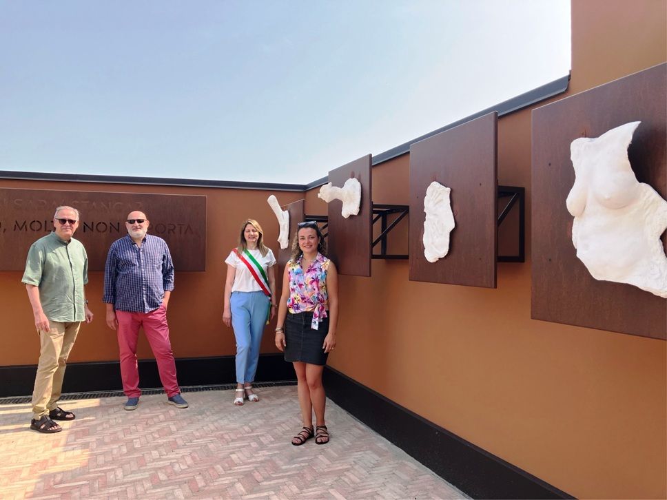 Questa volta l'artista, che firma in paese le grandi sculture sul Mare Padano, ha puntato su installazioni che ritraggono parti anatomiche femminili (una mano, un busto, una porzione di viso): "Con questi elementi la donna lascia un segno nel mondo", ha spiegato Sanlorenzo.
