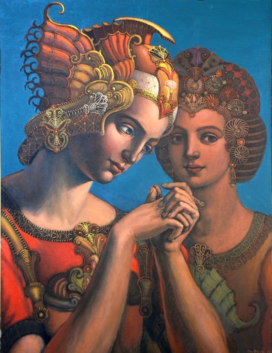 - Muse enigmatiche e malinconici guerrieri: la Musa ideale di Perosino è una donna del Rinascimento, un essere dolcissimo e un obiettivo irraggiungibile. Spesso scambiano baci con i loro cavalieri in "toccate e fuga" ariostesche, senza la sensualità appassionata di Klimt o Hayez.
