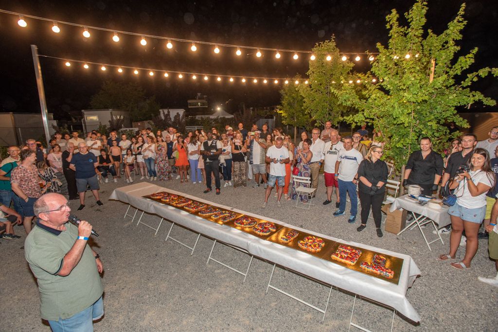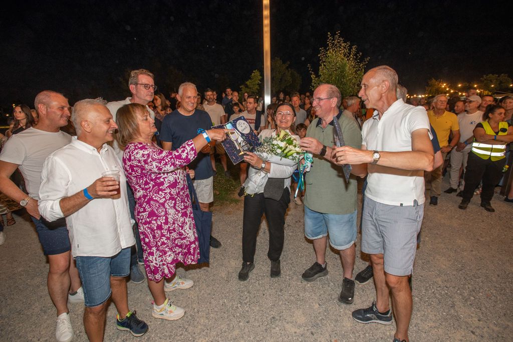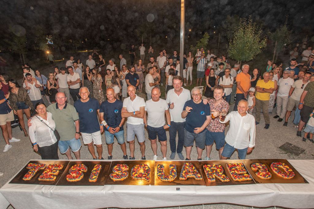A seguire, grande grigliata “sotto le stelle”: un momento conviviale culminato con la presentazione – e l’assaggio – dell’enorme dolce celebrativo commissionato per l’occasione, una torta lunga ben sei metri recante il nome “Tesisquare”. Si è ballato fino a notte inoltrata su note dolci-amare, tra ricordi e un pizzico di nostalgia, come si conviene a un compleanno importante. Prima a esibirsi la cover band 88.3, che ha riproposto i successi del mitico gruppo pop 883.