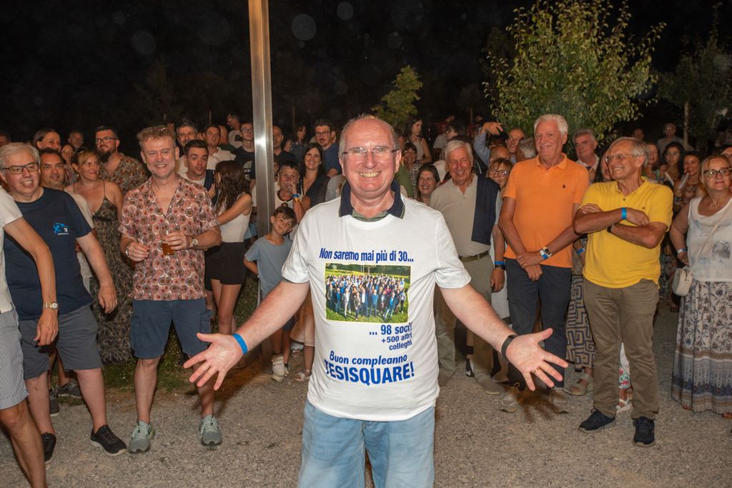 “È un piacere festeggiare insieme a tutti i collaboratori e le loro famiglie. Questo momento divertente è per celebrare un percorso che è già abbastanza lungo… metà della mia vita biologica e abbondantemente tre quarti di quella professionale”, inquadra opportunamente Giuseppe Pacotto, “e come ogni traguardo è anche occasione di rilancio per un ciclo successivo: abbiamo un disegno in mente per il futuro dell’azienda in cui il lavoro di squadra e la condivisione sono come sempre motori portanti”. La forza del modello d’impresa di Tesisquare è mettere al centro le persone e il caloroso applauso dei presenti rivolto al fondatore ne è una dimostrazione.