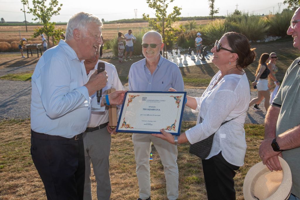 Nel pomeriggio di sabato 28 giugno, il parco TesiLand a Roreto di Cherasco ha accolto i dipendenti di Tesisquare, accompagnati dai familiari, per celebrare i 30 anni dell’azienda. L’oasi verde è un parco privato a uso pubblico, per l’occasione riservato alle celebrazioni del trentennale. Dalle 17, atmosfera di festa e condivisione: torneo di scacchi, partite di calcetto e calcio a 7, sfide a ping-pong e l’emozionante tiro alla fune tra padri e figli hanno animato il parco, spazio di collaudato divertimento intergenerazionale.