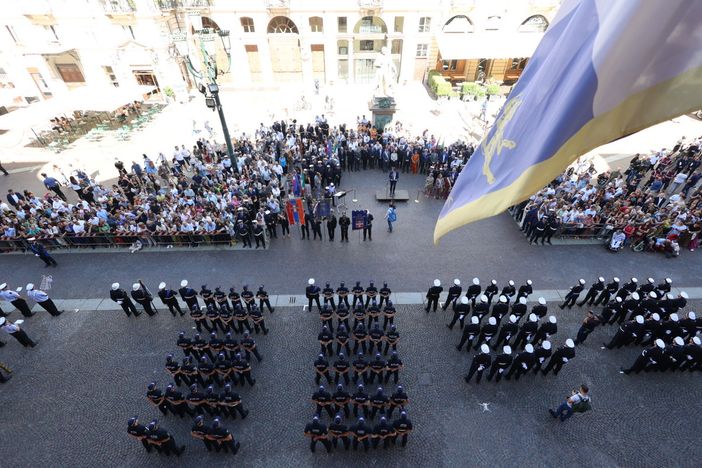Si è svolta oggi in Piazza Carignano a Torino la cerimonia di chiusura del 97° Corso Regionale di Formazione per Agenti di Polizia Locale, promosso dalla Regione Piemonte in collaborazione con la Città di Torino.