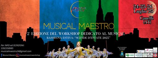 Da giovedì 24 a sabato 26 luglio, torna a Canelli “Musical Maestro”, l’evento che propone tre giornate per immergersi nelle differenti arti del musical, avvicinando giovani e adulti alle tre principali discipline dello spettacolo: canto, danza e recitazione.