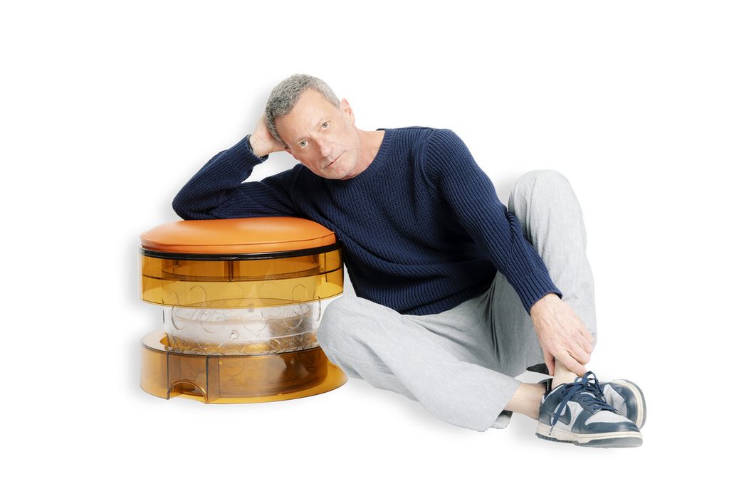 È la genesi di Kutyna: una sedia telescopica a scomparsa, che può essere totalmente chiusa, fungendo da pouf, regolata all’altezza di una sedia o a quella di uno sgabello. “Dall’idea alla realizzazione del prodotto ci sono voluti due anni, è un oggetto di design dietro al quale c’è una grande ingegnerizzazione: il meccanismo manuale di apertura e chiusura, che riproduce fedelmente quello del bicchiere, è molto complesso da traslare su una sedia”, sottolinea il designer. “In pratica abbiamo creato una seduta non su quattro gambe, ma su quattro perni”.