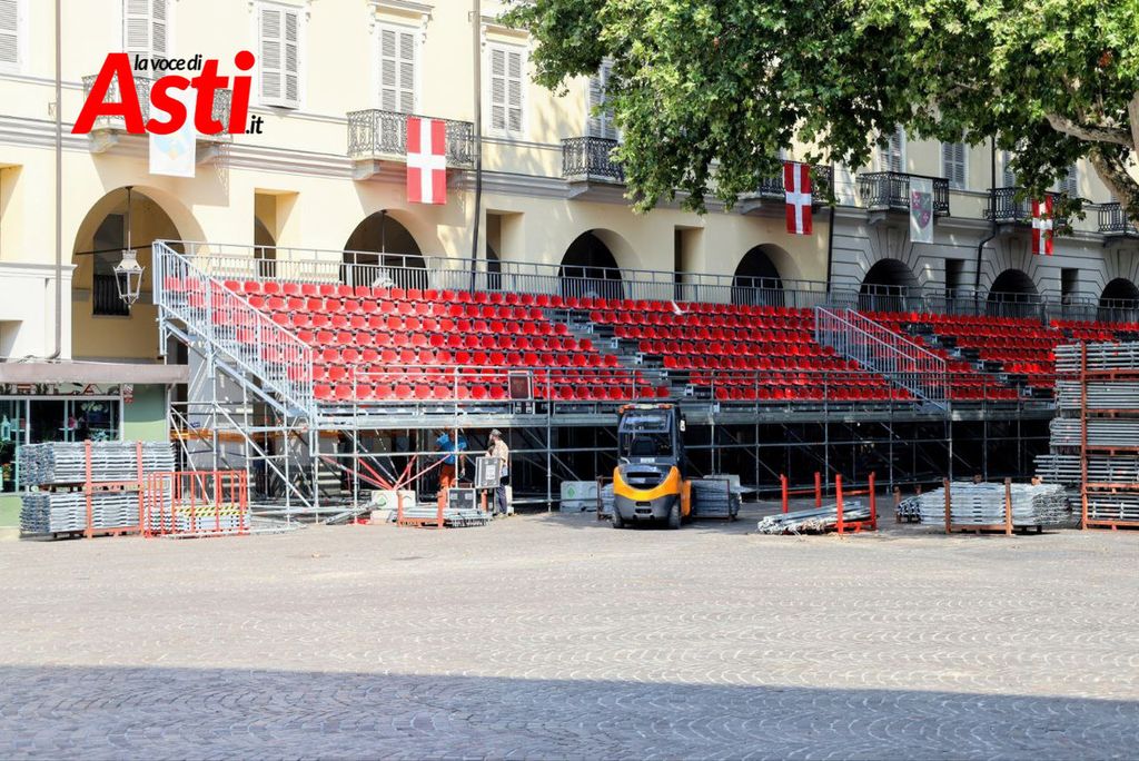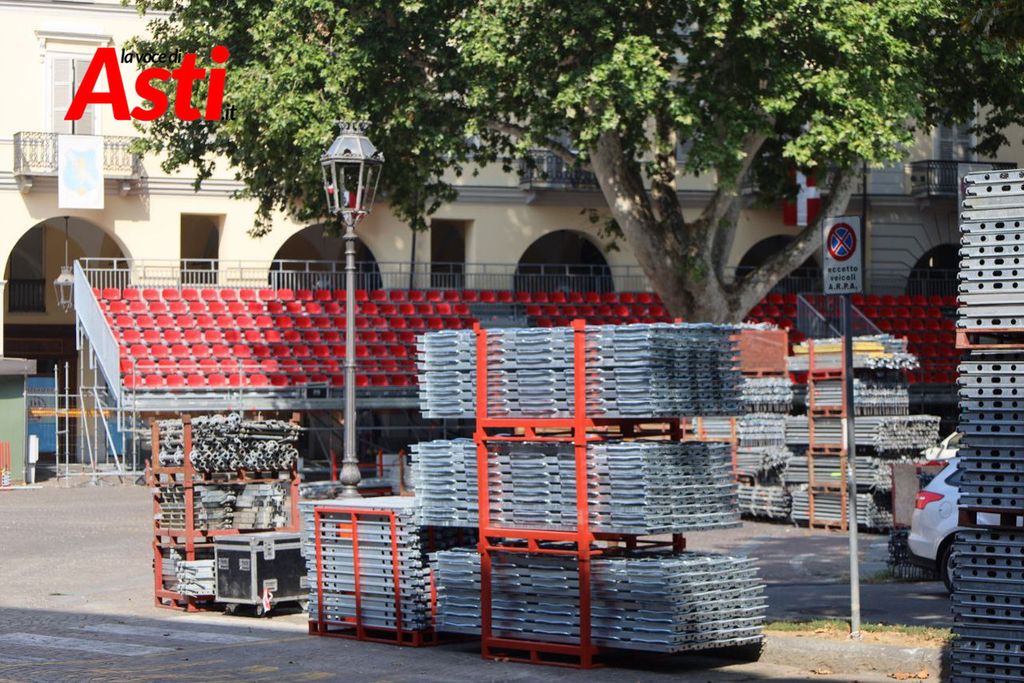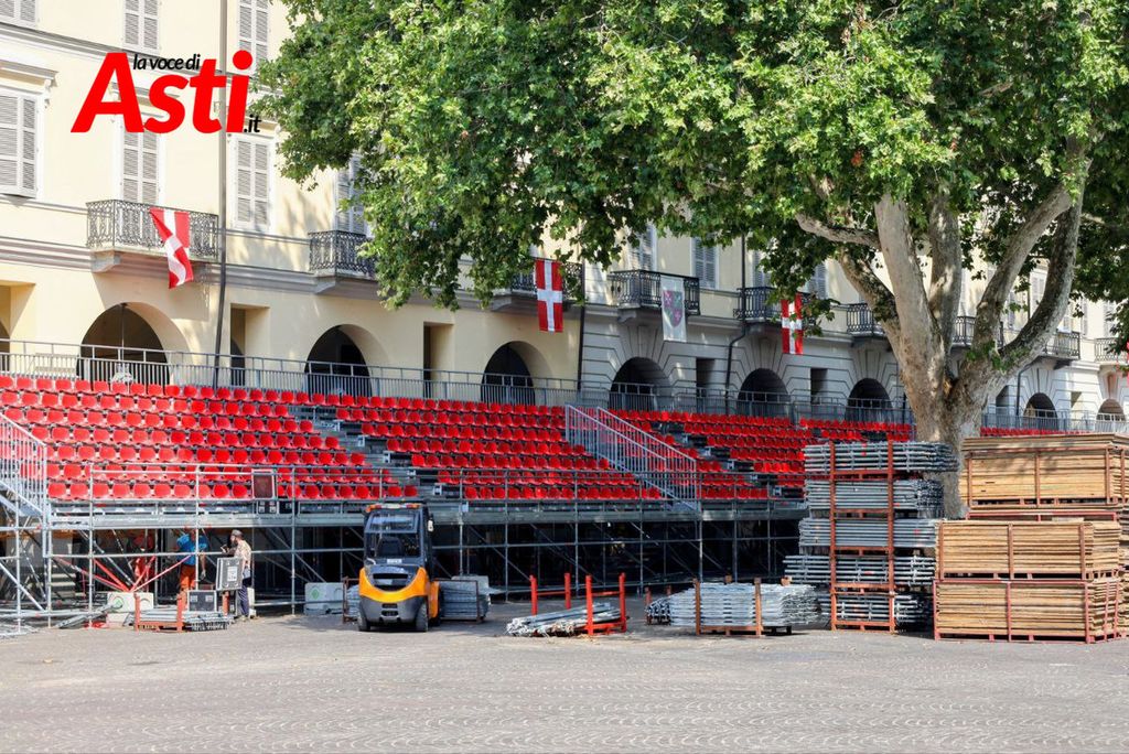 Asti si prepara a indossare il vestito del Palio e piazza Alfieri, cuore pulsante della corsa, ha già cominciato a cambiare volto. Le prime immagini mostrano gli operai al lavoro, i primi allestimenti delle tribune e le transenne che ridisegnano i percorsi pedonali. È l’inizio di una trasformazione che, da qui a settembre, modificherà profondamente la viabilità cittadina.