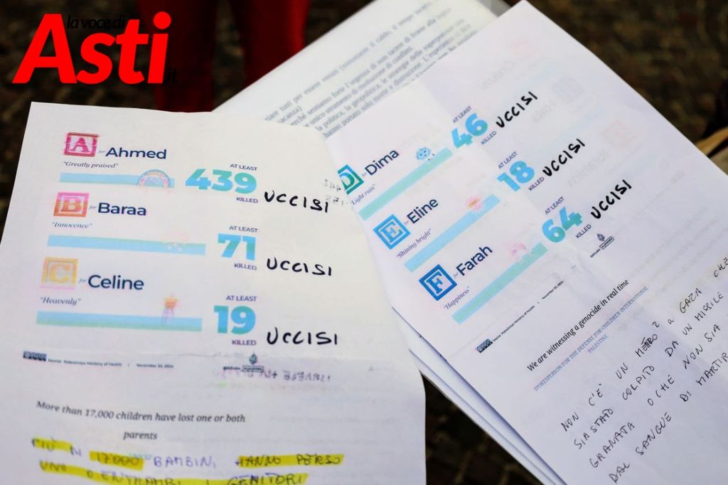 Mentre milioni di persone in tutto il mondo continuano a protestare, molti governi si limitano a condanne retoriche, senza azioni concrete. Per questo la Rete Welcoming Asti ha scelto di portare in piazza i nomi delle vittime, seguendo l'esempio del Cardinale Zuppi a Monte Sole.